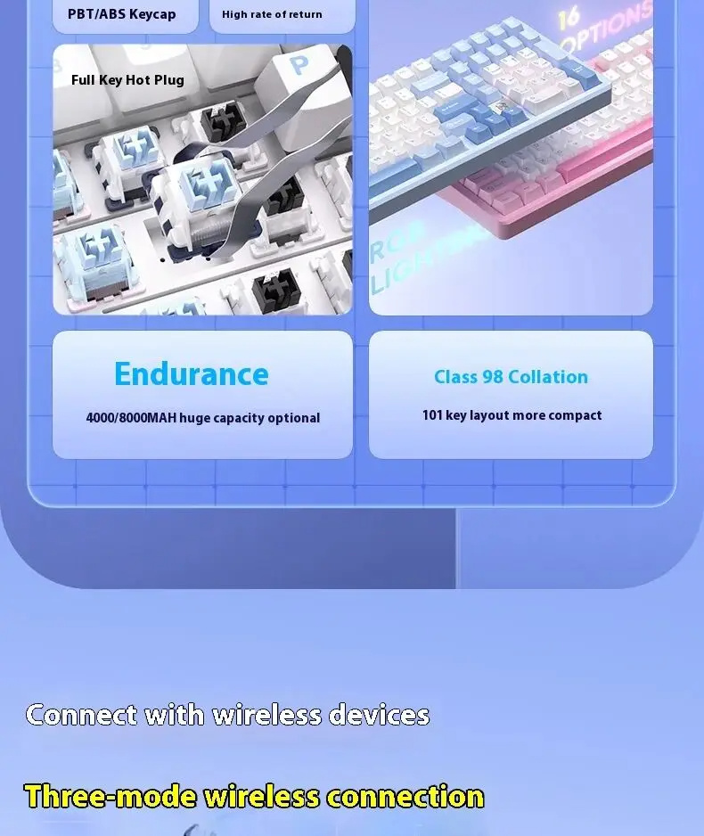 1. Kytkimien vaihto ilman juottamista: Hi98 Pro tukee kytkimien helppoa vaihtoa ilman juottamista, joten voit räätälöidä kirjoitustuntuman vaivattomasti.Paketin sisältö: