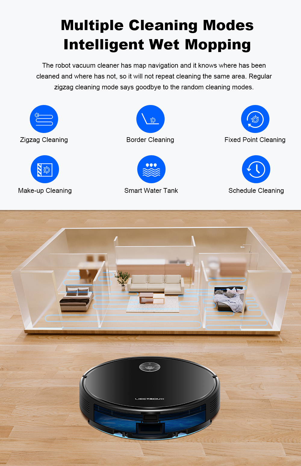 LIECTROUX C7 robotti-imuri ja märkämoppi WiFi-sovellus älykartoitus 6000 Pa imuteho harjaton moottori