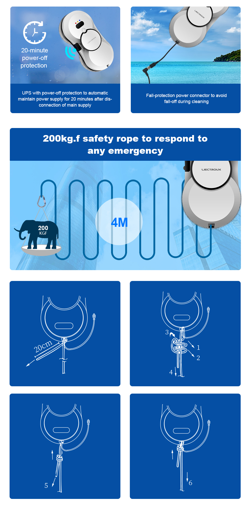 Liectroux YW710 ikkunanpesurobotti automaattinen kaksipuolinen vesisuihku sovellusohjaus ääniohjaus turvaköysi