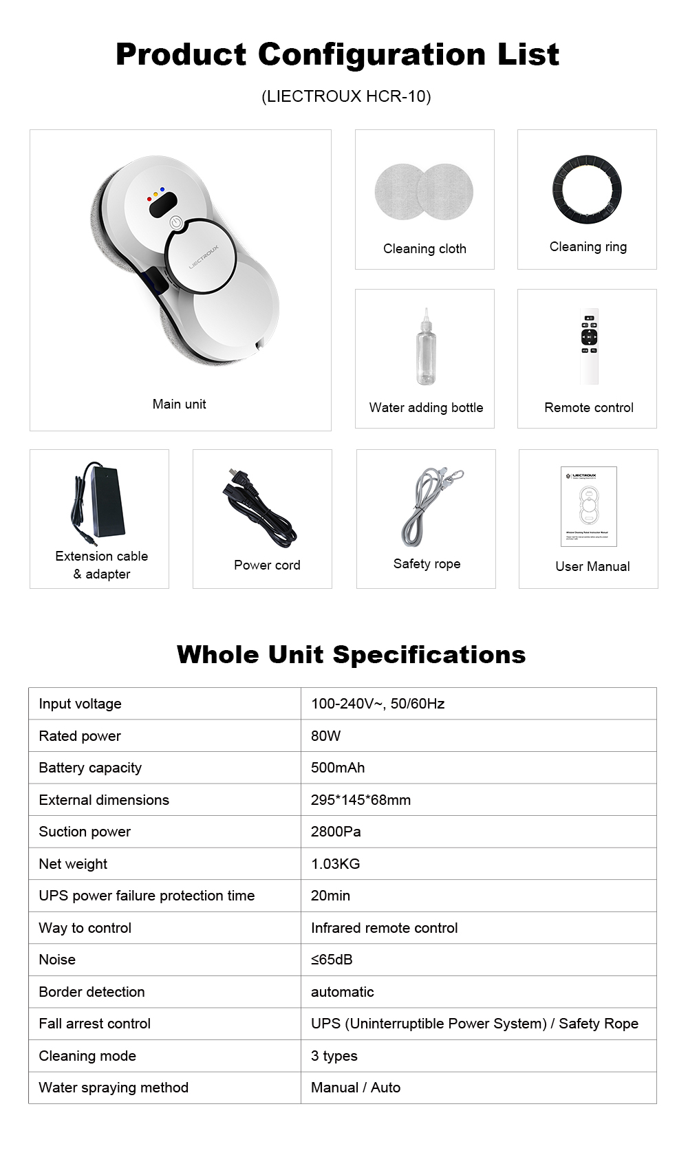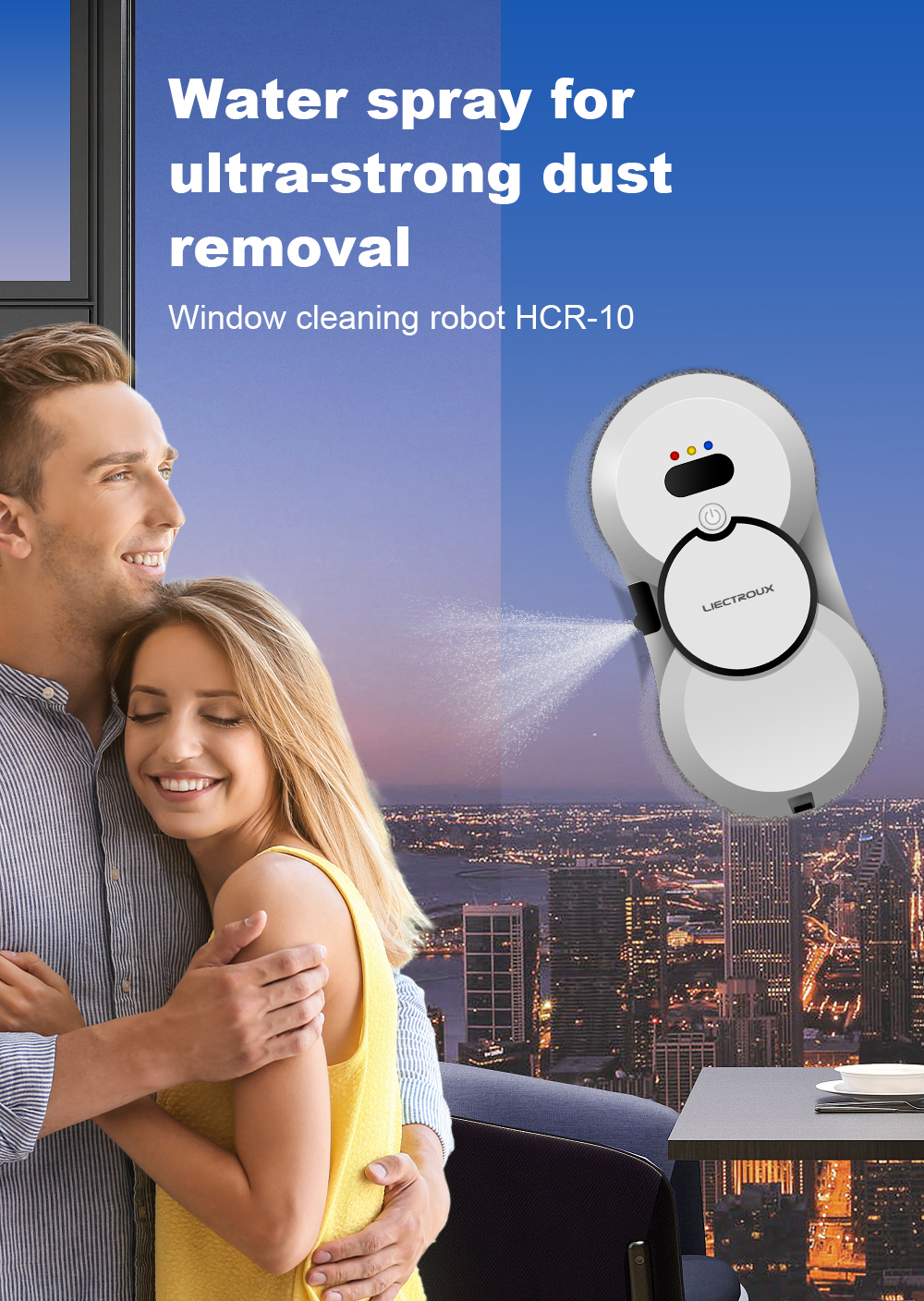 LIECTROUX HCR-10 kaukosäätöinen automaattinen ikkunanpesurobotti vesiruiskulla 2800 Pa imuteho