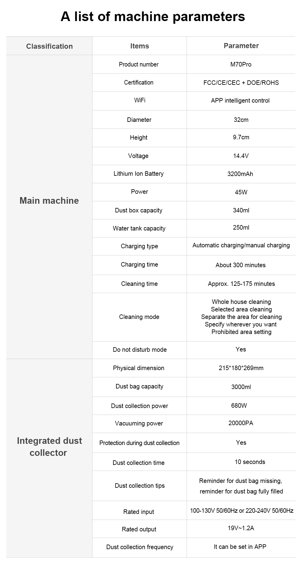 LIECTROUX M70 PRO on robottilattiaimuri, jossa on Li-DAR Smart 3.0 -navigointi, 6500 Pa imuteho sekä 3-in-1-toiminto: lakaisu, imurointi ja moppaus. Pitkä käyttöaika, automaattinen tyhjennysasema ja monipuoliset ohjausvaihtoehdot tekevät kodin siivouksesta vaivatonta.