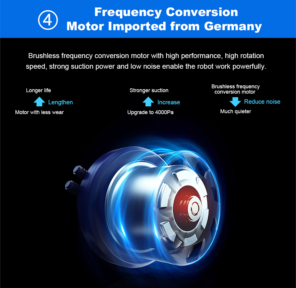 Harjaton moottori, korkea suorituskyky ja pyörimisnopeus, vahva imuteho ja alhainen melutaso.