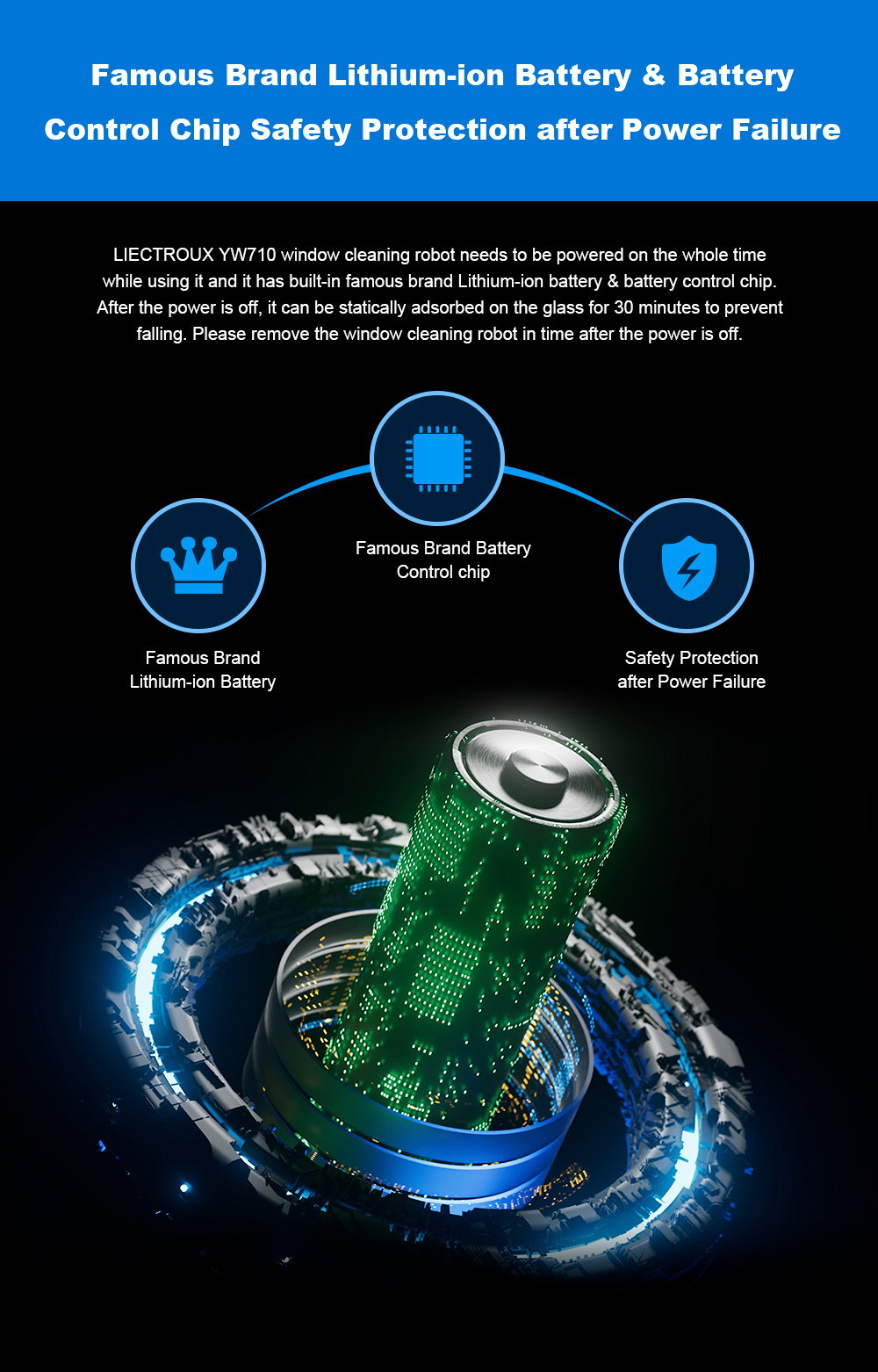 LIECTROUX YW610 robotti-ikkunanpesuri 9,3 cm kompakti runko vesisuihku tekoälyinen pyyhintäjärjestelmä putoamissuoja