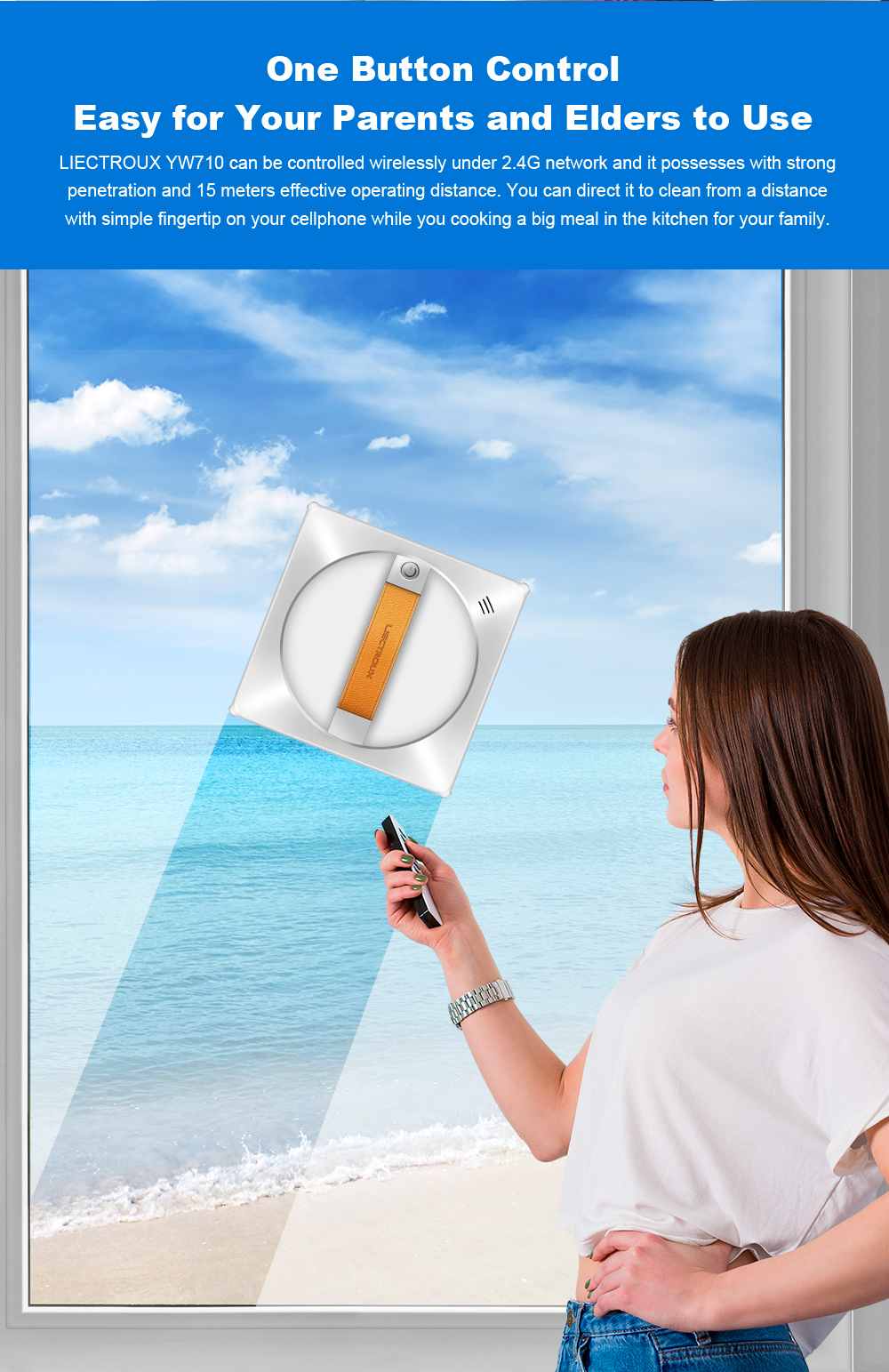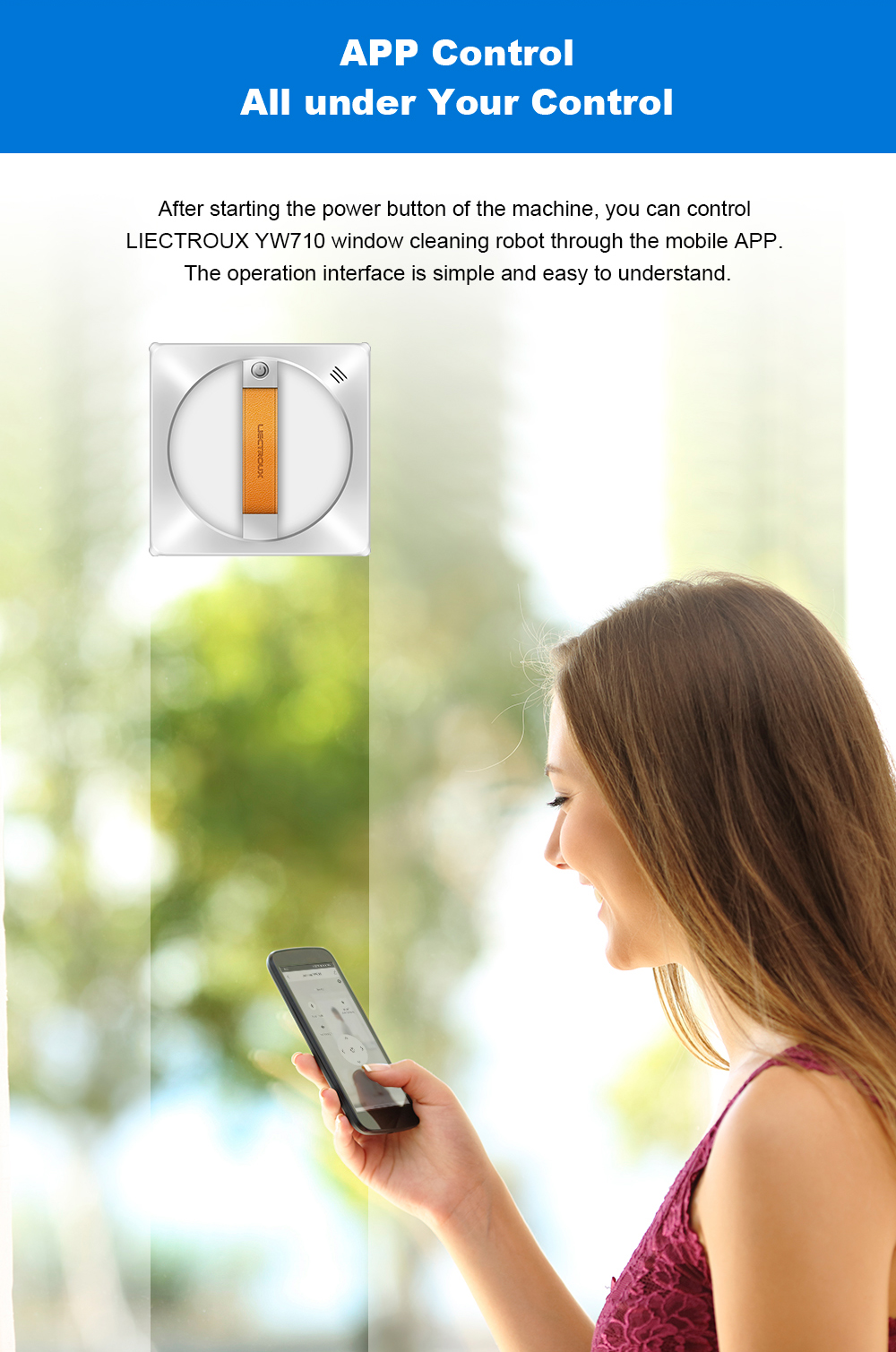 Liectroux YW710 Window Cleaner -ikkunanpuhdistin helpottaa ikkunoiden puhdistusta automaattisilla kaksipuolisilla vesisuihkuilla, älypuhelinsovelluksella ohjauksella ja ääniohjauksella. Soveltuu sekä kehystetyille että kehyksettömille laseille.