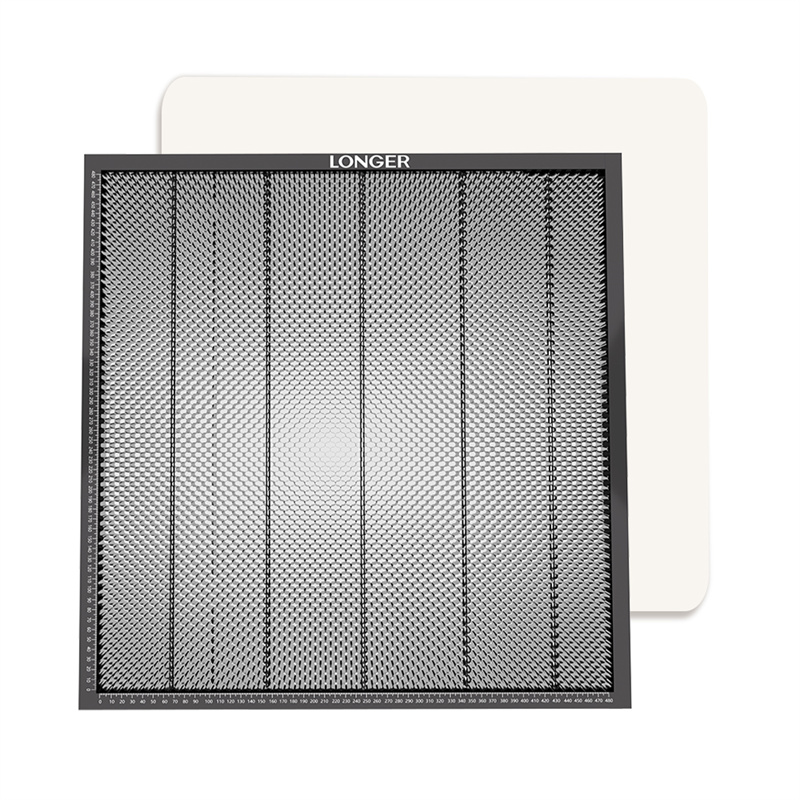 Hunajakennopaneeli laserkaiverrukseen ja -leikkaukseen: suuri 500mm x 500mm työalue, tehokas savunpoisto ja tasainen lämmönpoisto suojaavat työpöytää ja parantavat työn jälkeä. Sopii useimpiin diodi-, kuitu- ja CO2-laserkoneisiin.
