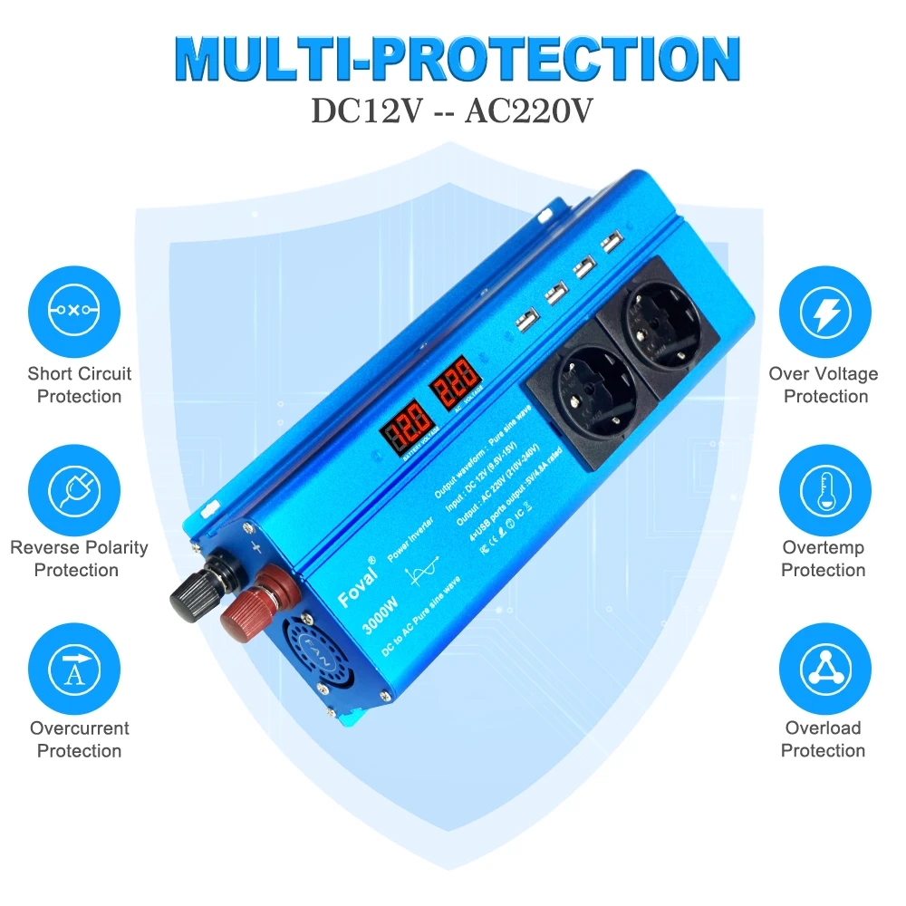 LVYUAN 12V–230V invertteri 1000W jatkuva teho 2000W huipputeho EU-pistoke led-näyttö muokattu siniaalto 4 usb-porttia F-1000A