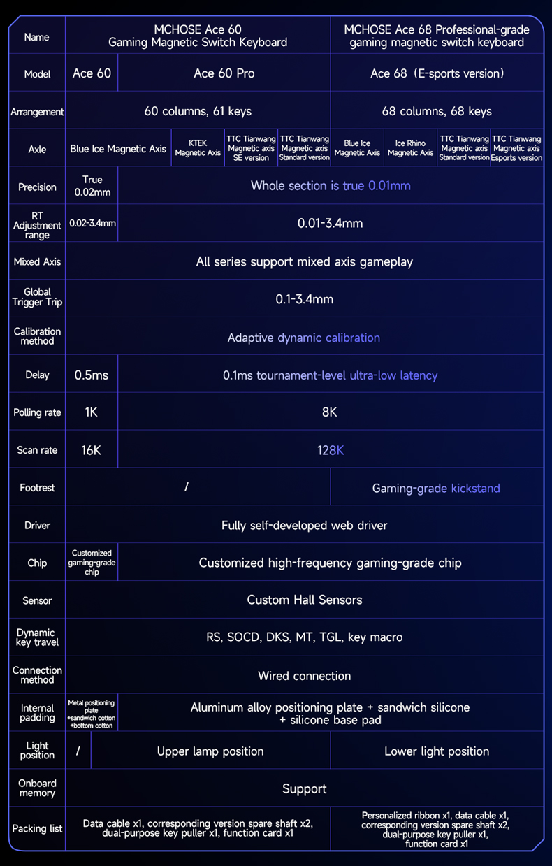 | Tuotteen nimi | MCHOSE Ace 68 Wired Magnetic Switch Mechanical Gaming Keyboard |