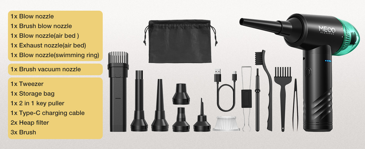 MECO ELEVERDE ME-CR1 sähköinen nelitoiminen paineilmapuhallin ja imuri kolmivaihteinen ladattava näppäimistön puhdistin