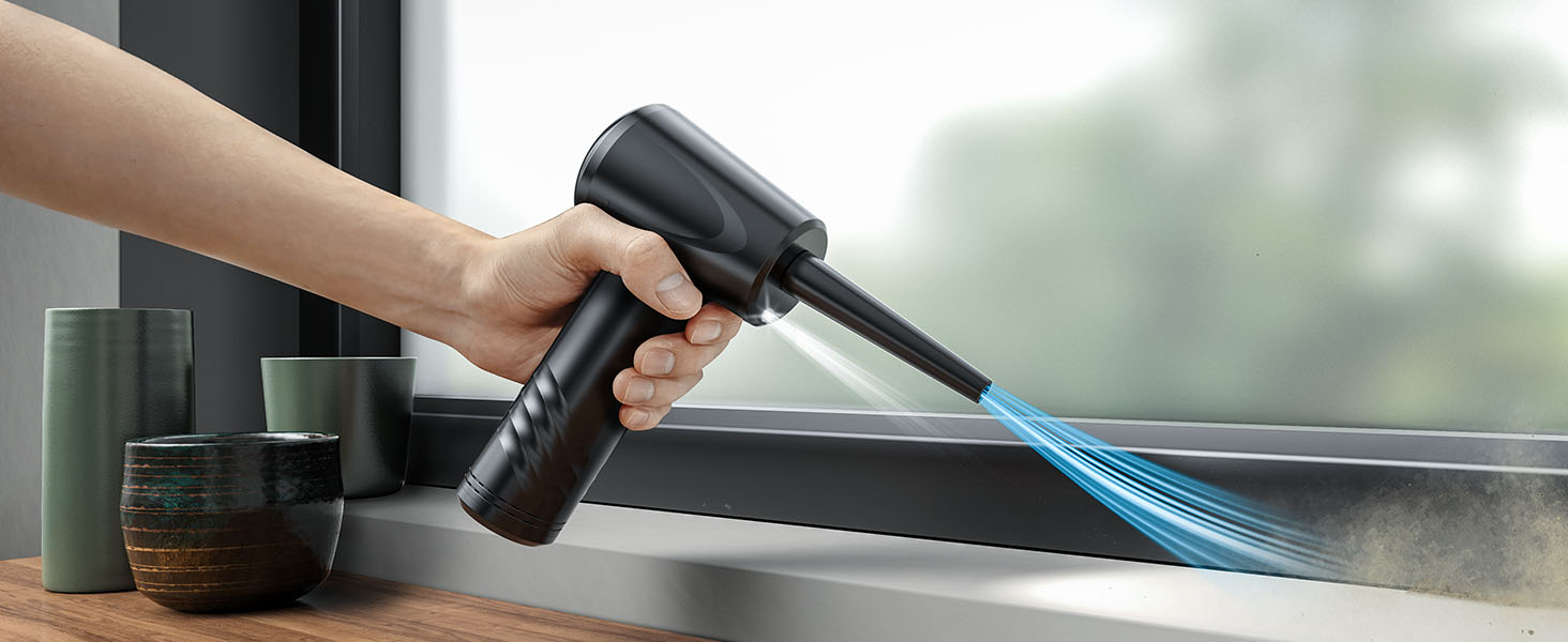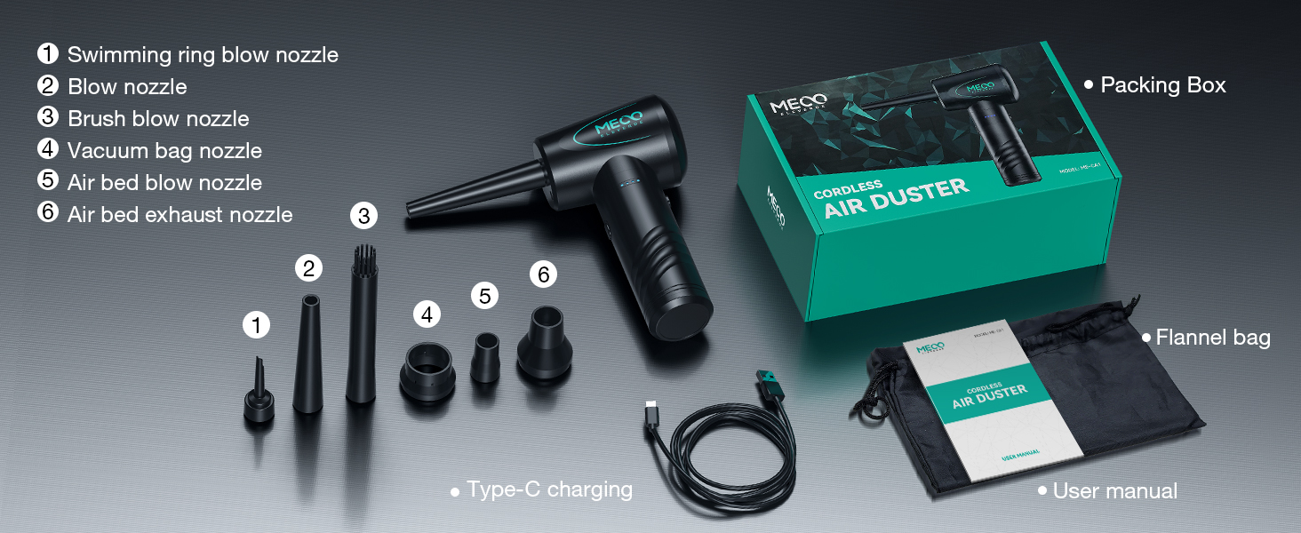 MECO -pölypuhallin hyödyntää kellomaisen ilmanohjauksen, joka kasvattaa puhallustehoa 22% verrattuna tavanomaisiin vaihtoehtoihin. Jopa 100,000 RPM -nopeuteen yltävä ilmavirta auttaa syväpuhdistuksessa.