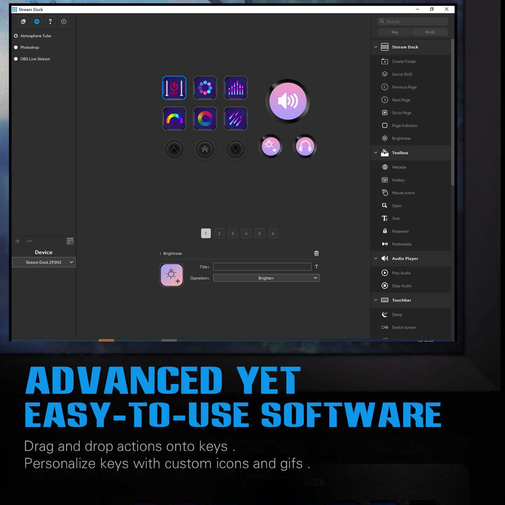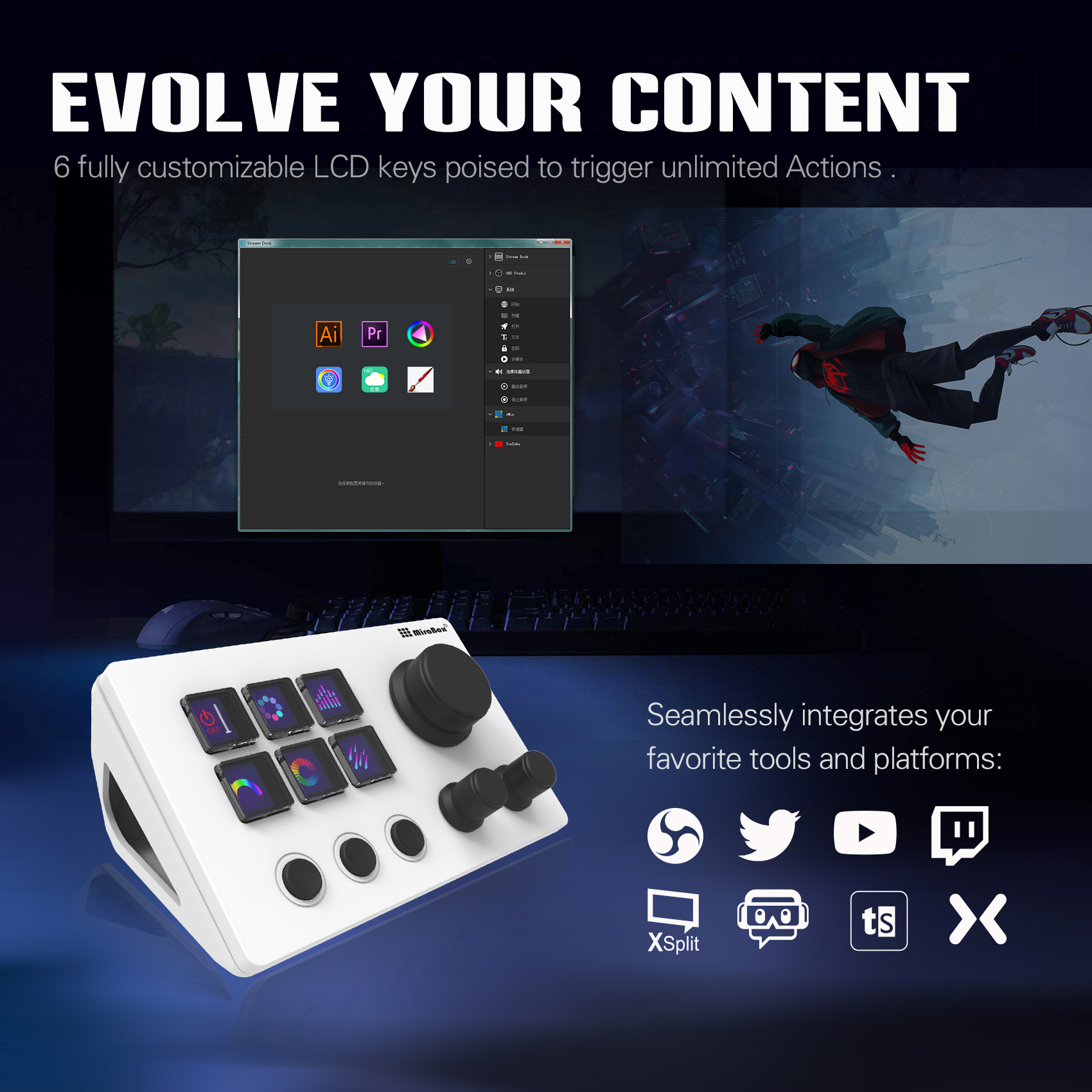 1. Mukautettavat LCD-näppäimet: Kuusi ohjelmoitavaa näppäintä, joihin voi liittää toimintoja ja mukautettuja kuvakkeita sujuvaa työnkulkua varten.