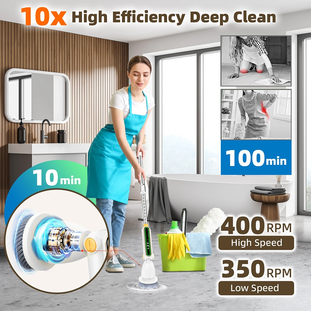 - Suuri vääntömomentti: 20Kg-cm (Taso 1) ja 25Kg-cm (Taso 2) auttavat irrottamaan pinttyneen lian ja rasvan keittiössä, kylpyhuoneessa ja muilla pinnoilla.