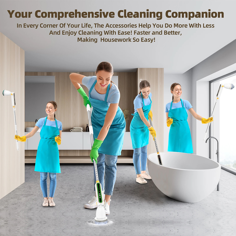 Monitoiminen sähköinen puhdistusharja 3600 mAh jatkovarsi 38–105 cm tehokas vääntö hiljainen kaksinopeus A180-moottori