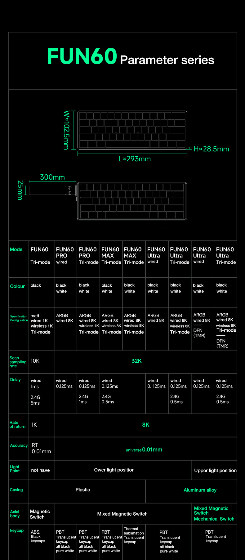 MONSGEEK FUN60 Ultra mekaaninen tri-tilainen 61-näppäininen pelinäppäimistö magneettikytkimet ARGB