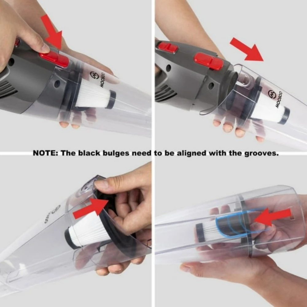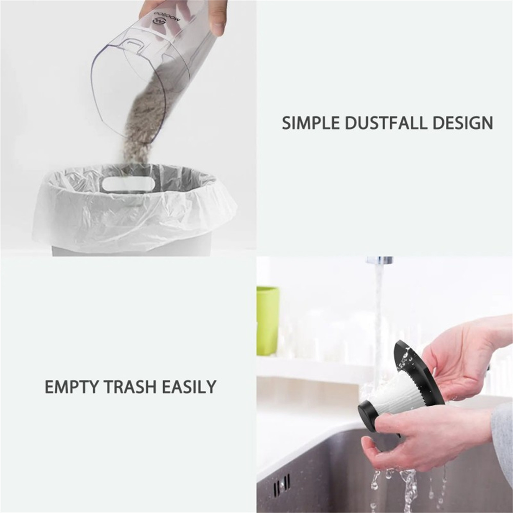 HEPA-suodatin on pestävä ja uudelleenkäytettävä. Suodattimet on puhdistettava säännöllisesti imutehon heikkenemisen ja tukosten ehkäisemiseksi. Huuhtele ja anna kuivua täysin ennen uudelleenkäyttöä.