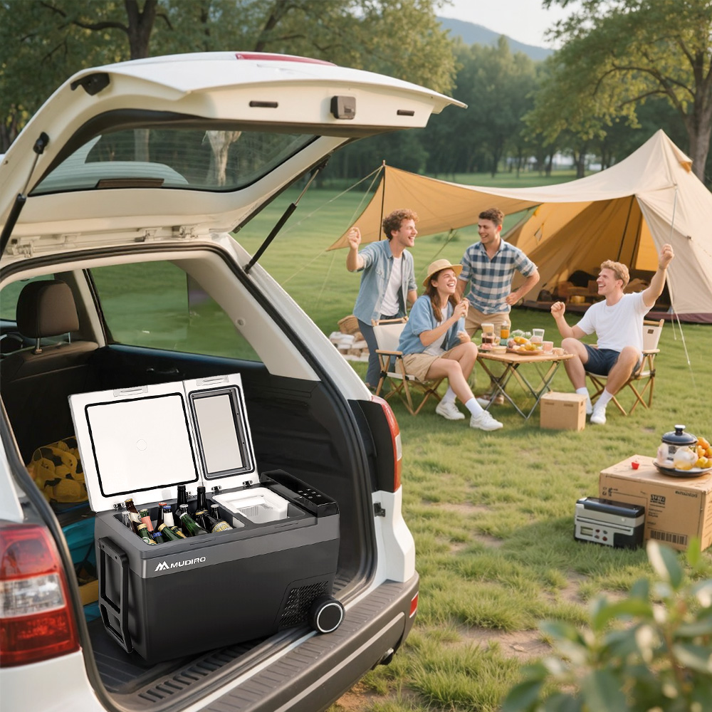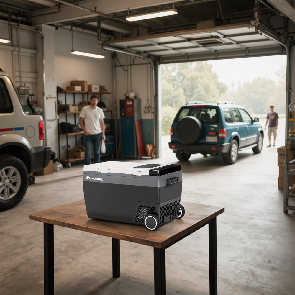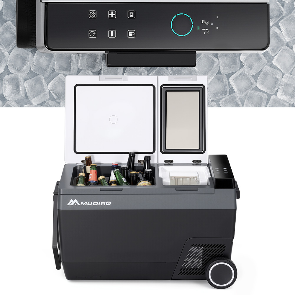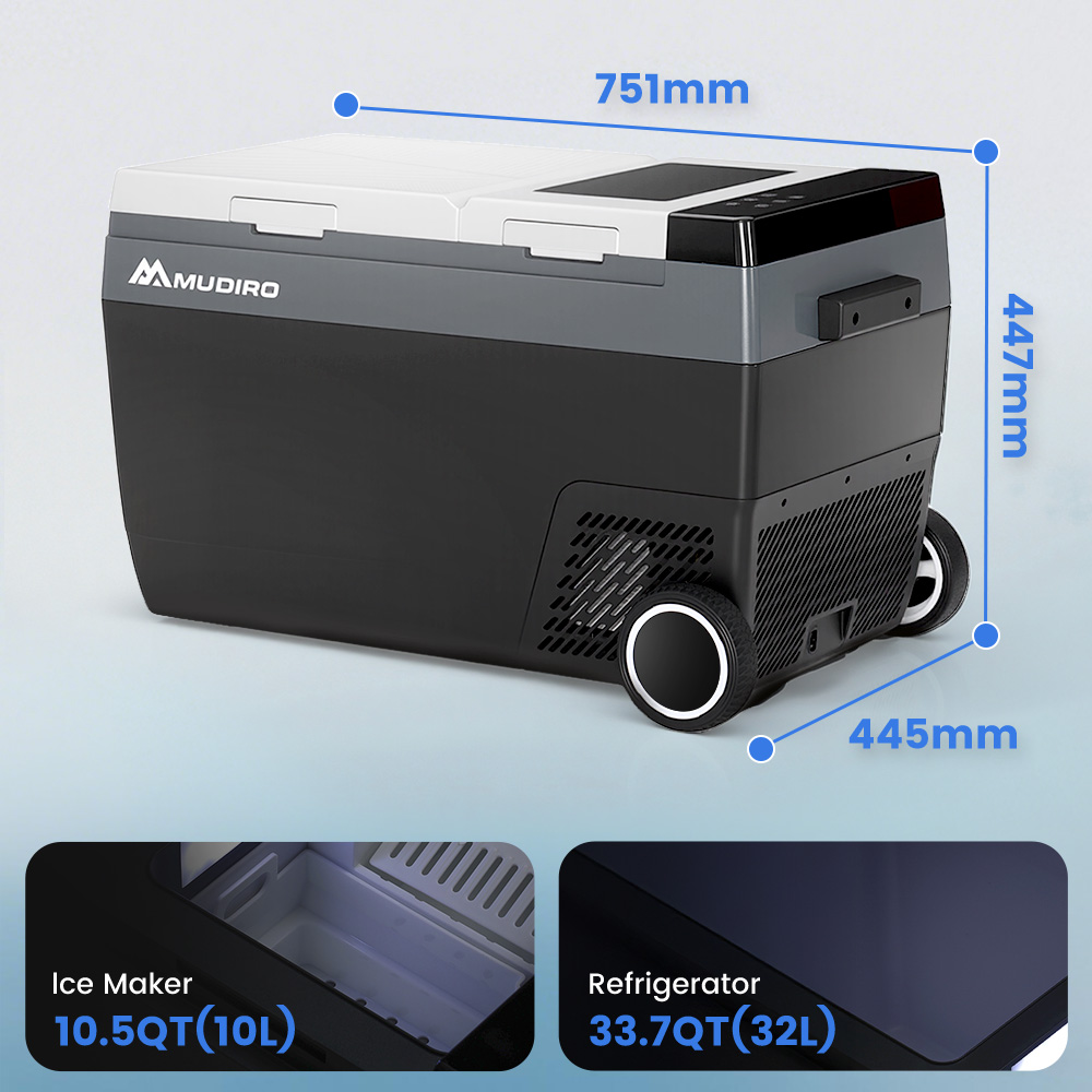 MUDIRO 45L kannettava autojääkaappi jäänvalmistajalla nopea jäähdytys LED-valaistus energiatehokas
