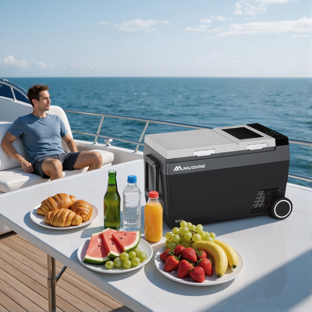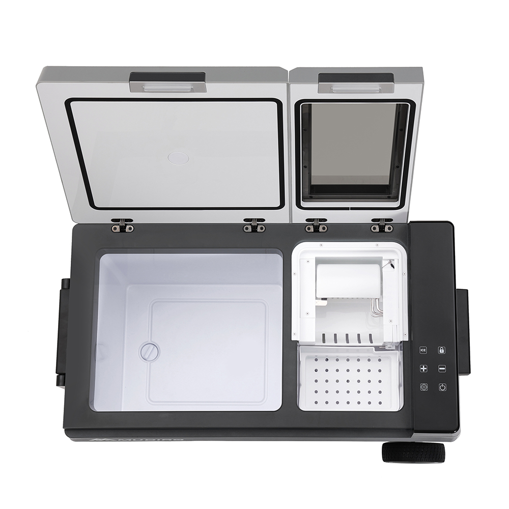 Tämä 45 litran kannettava auton jääkaappi ja jääpalakone sopii retkille, veneeseen, mökille ja kotikäyttöön. Tehokas kompressori, tarkka lämpötilansäätö -20°C – 20°C ja monipuoliset virtalähteet (aurinkopaneelit, verkkovirta, auton 12V/24V) pitävät juomat ja ruoat viileinä sekä tekevät jäätä automaattisesti.