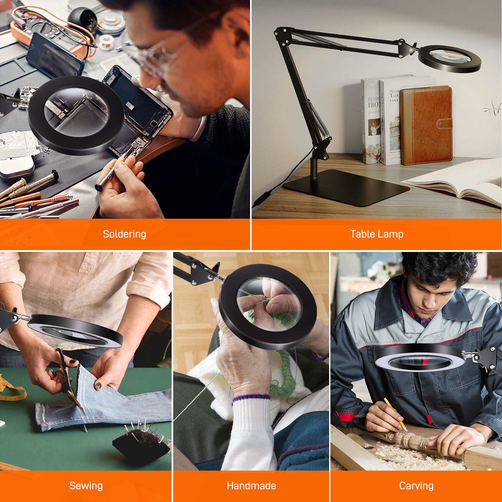 MUSTOOL -suurennuslasi valolla tarjoaa 4.3-tuumaisen lasilinssin, joka antaa selkeän ja vääristymättömän näkymän. 10X-suurennus tekee siitä sopivan esimerkiksi käsitöihin, lukemiseen, pienoismallien maalaamiseen, ompeluun, ristipistotöihin, timanttimaalaukseen, korutöihin, harrastuksiin, manikyyriin, juottamiseen, kynsiteknikoille, helmityöhön, perhonsidontaan, neulontaan, palapeleihin, korjauksiin, piirtämiseen, kirjojen lukemiseen ja muihin tarkkuutta vaativiin töihin. Suurennuslasi valolla on suunniteltu helpottamaan tarkkaa lähityöskentelyä.