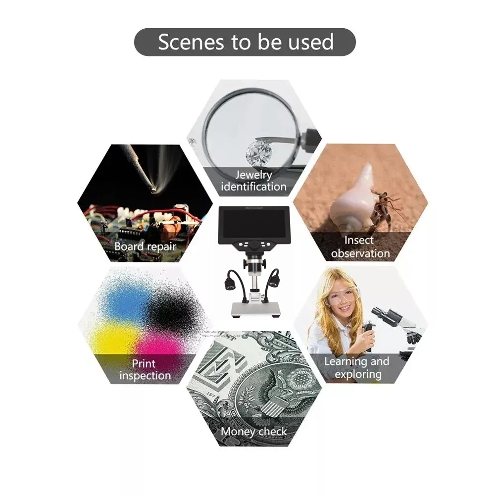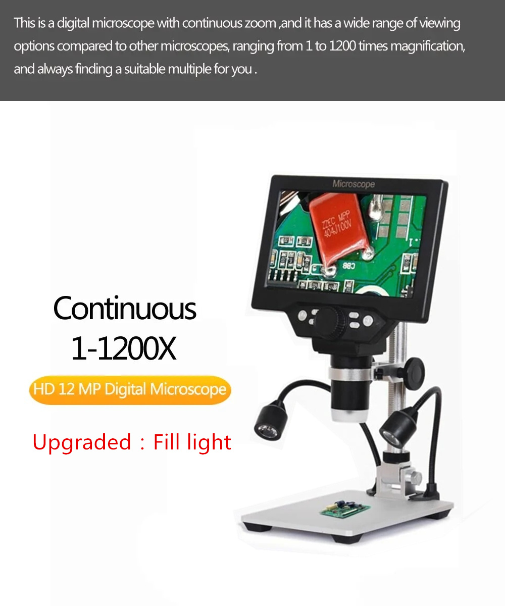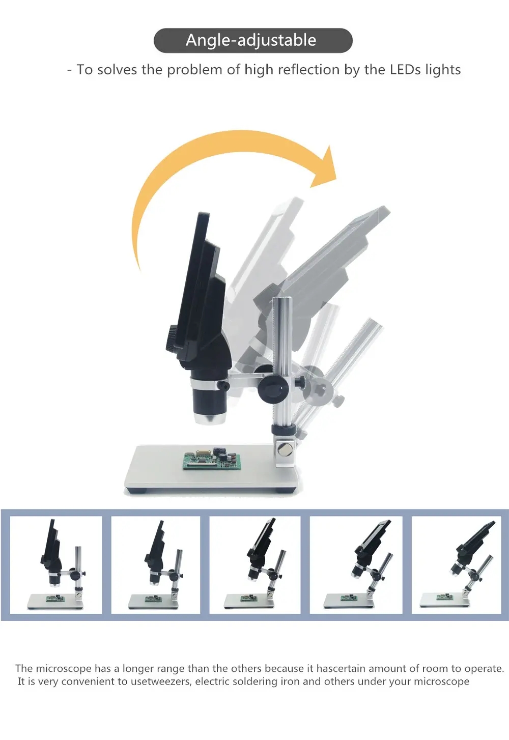 MUSTOOL G1200D digitaalinen mikroskooppi 12 megapikselin 7 tuuman värinäyttö suuri jalusta 1–1200-kertainen jatkuva suurennus