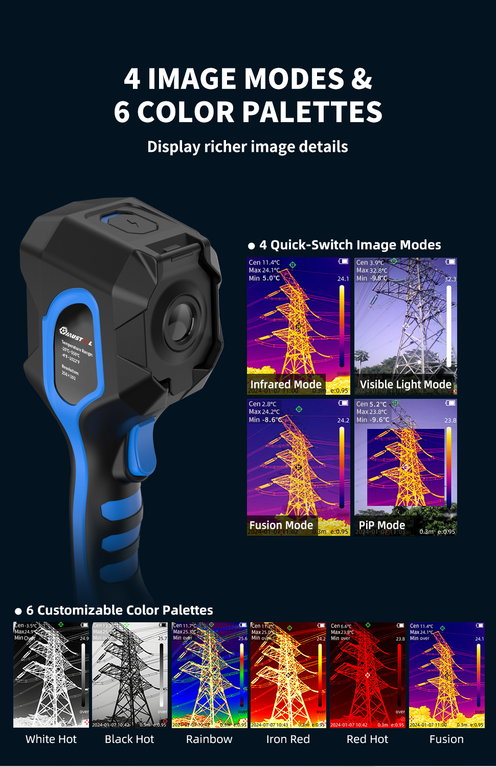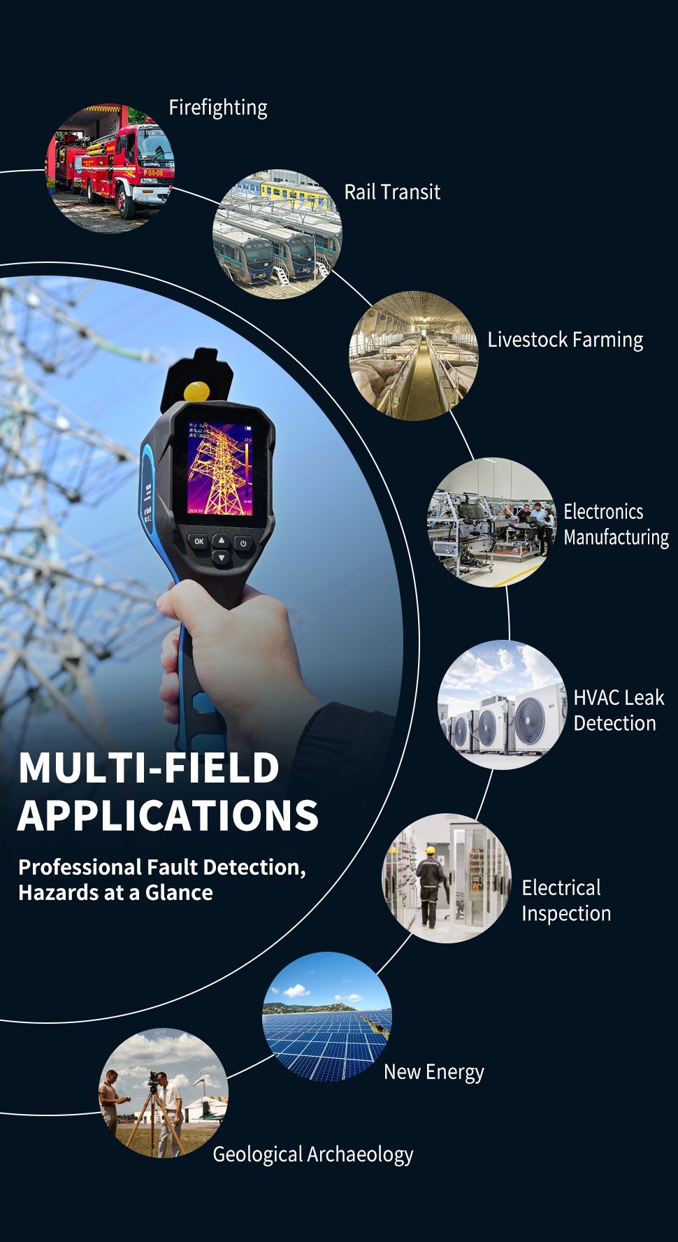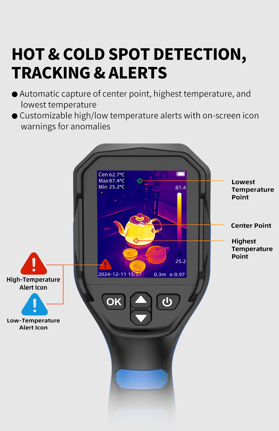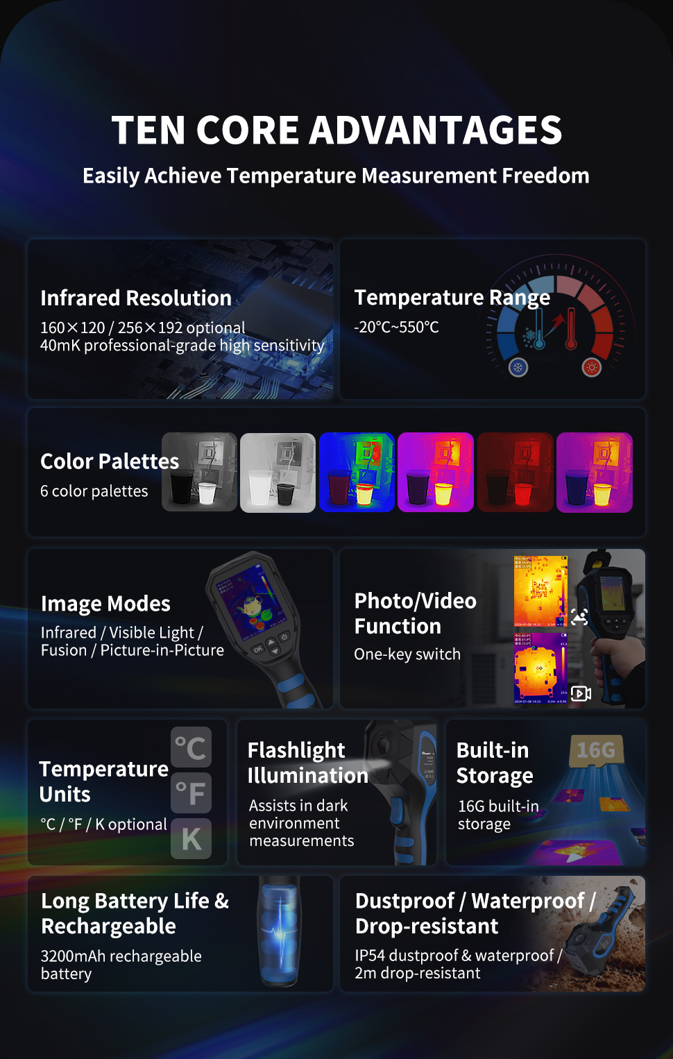 - Korkea 256×192 infrapunaresoluutio ja ≤40mK lämpöherkkyys tarkkaan vianetsintään
