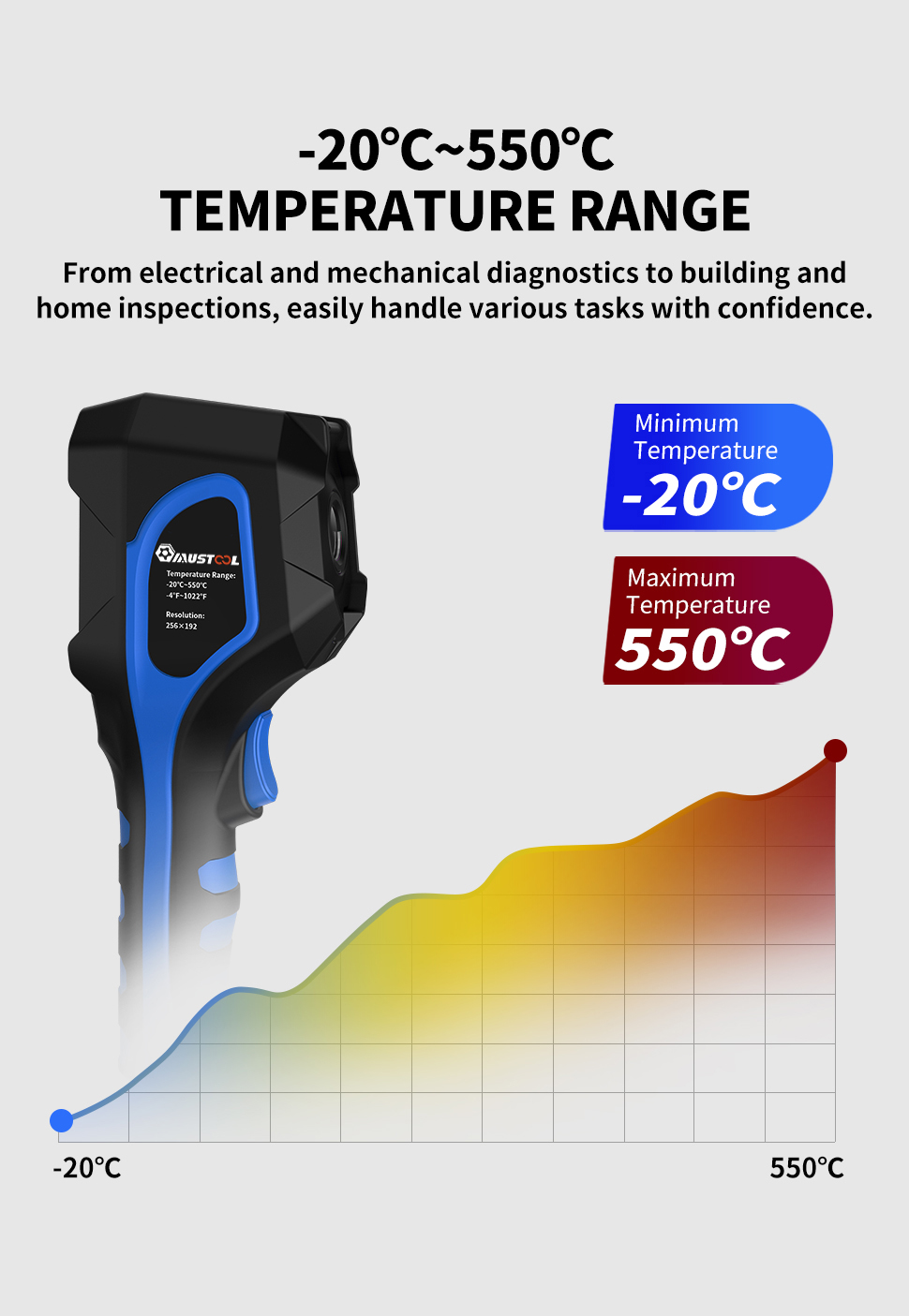 MUSTOOL kädessä pidettävä 256×192 lämpökamera korkean resoluution kaksoislinssi ladattavalla akulla