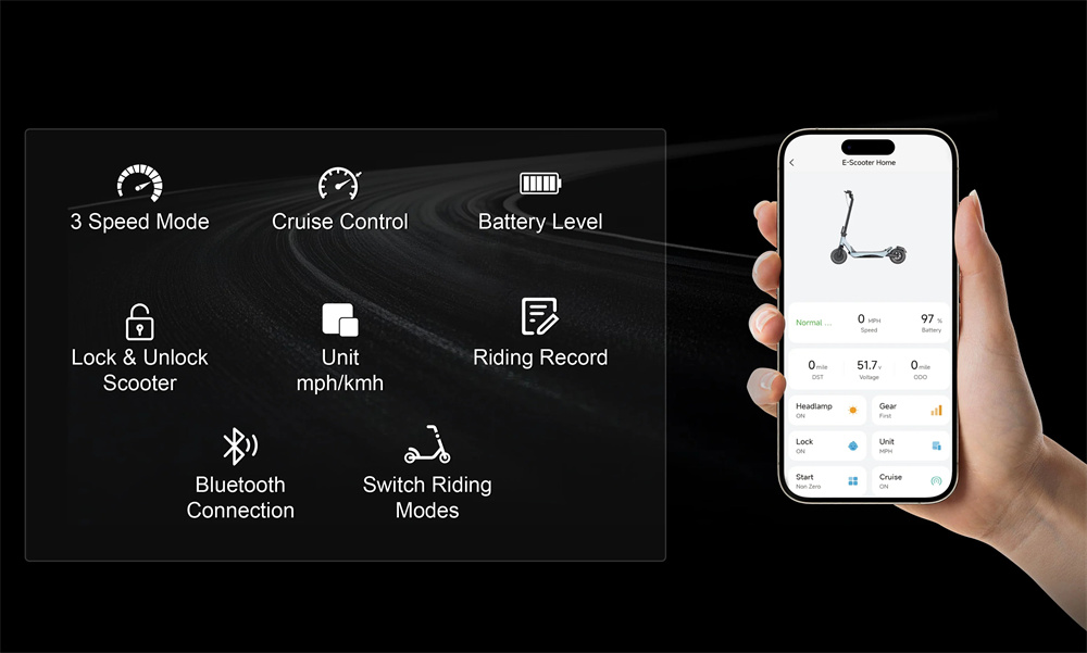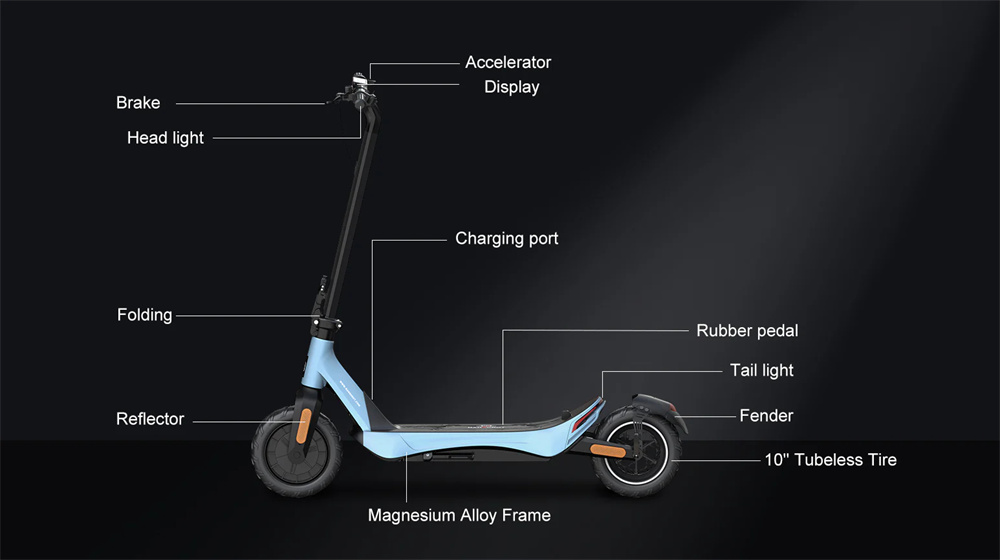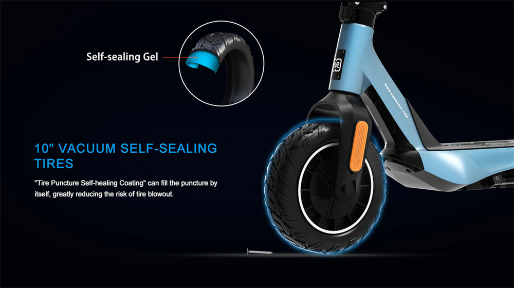 - 10-tuumaiset sisärenkaattomat renkaat mukavaan ja huolettomaan ajoon