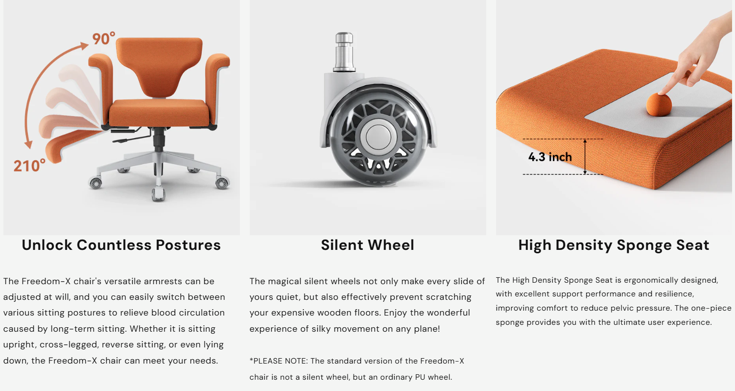 Useat säädöt sopivat kotityöhön, lepoon ja viihteeseen sekä yhteisiin hetkiin lapsen tai lemmikin kanssa. Freedom-X yhdistää ergonomian ja leikkisyyden ja tuo arkeen uutta iloa.