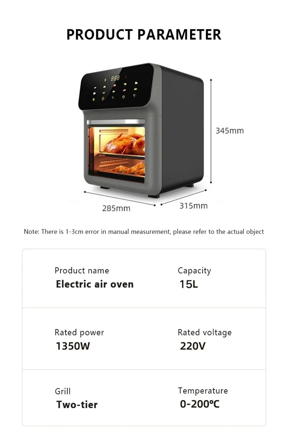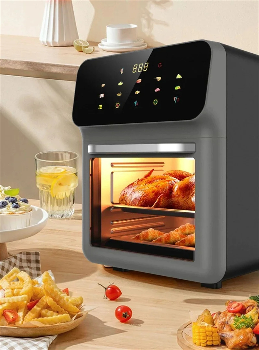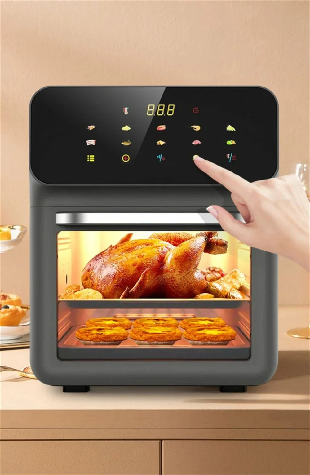 NovuLife 1350W ilmakeitin 15L kosketusnäyttö ikkunalla öljytön perhekoon uuni