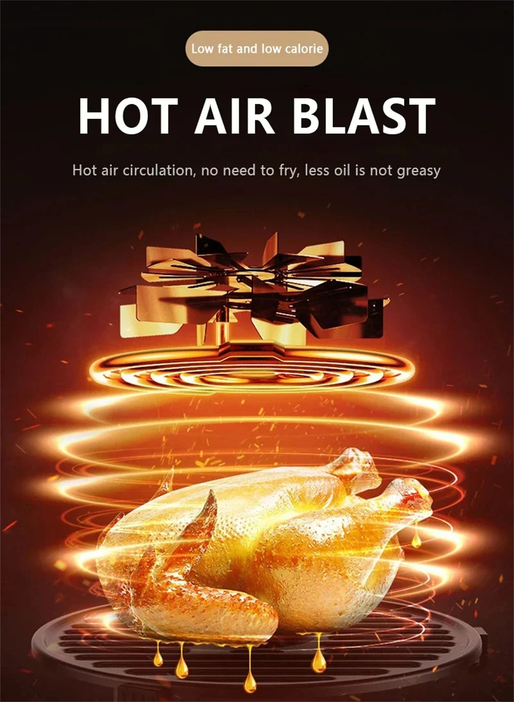 - Vähärasvainen kuumailmapaisto: Valmista maukasta ruokaa kuumailmatekniikalla – vähemmän rasvaa ilman mausta tinkimistä.