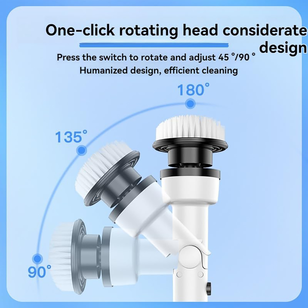- Säädettävä harjapään kulma: joustava kulmasäätö helpottaa suihkupäiden, hanan rakojen ja muiden hankalien kohtien puhdistusta.