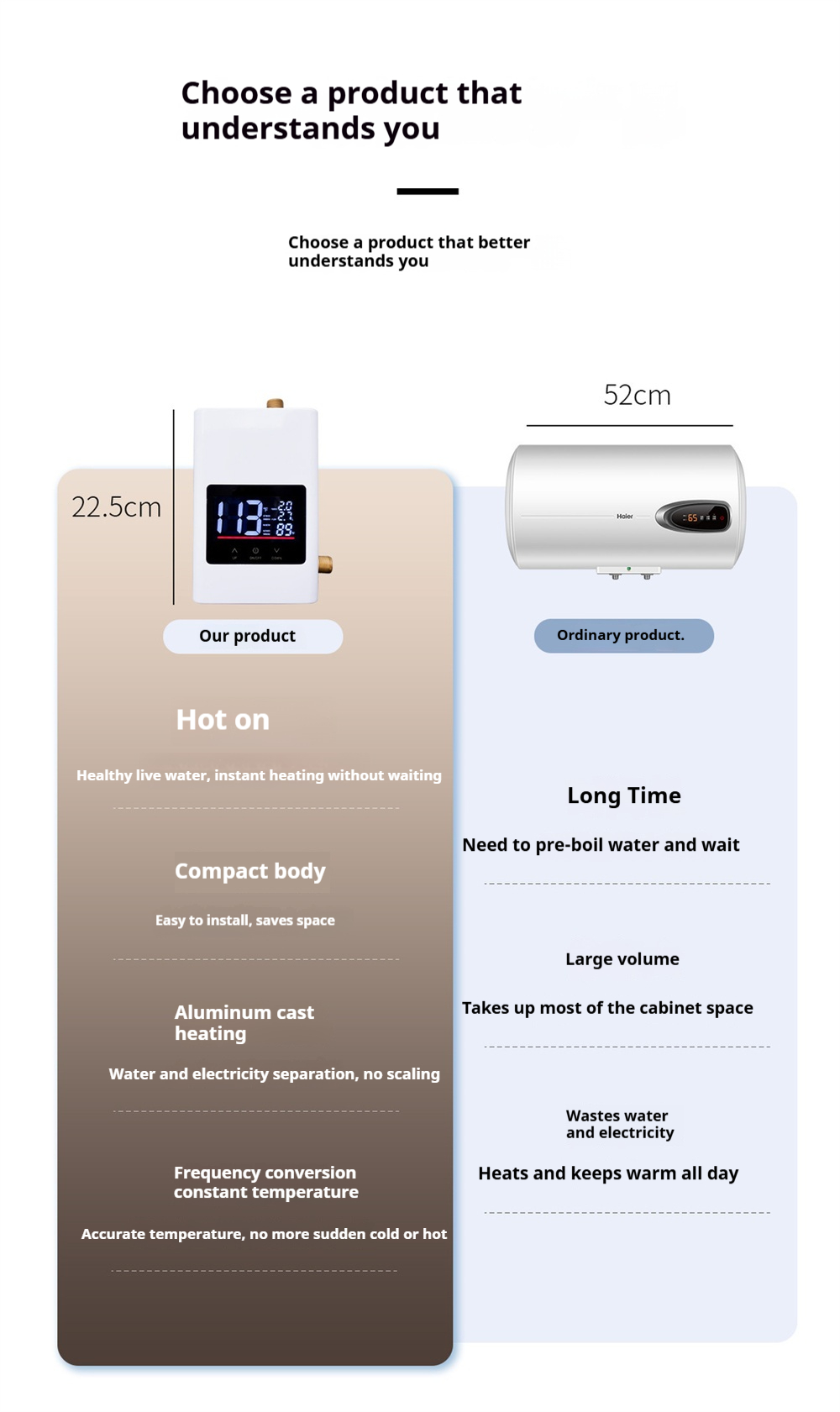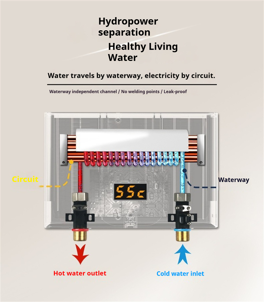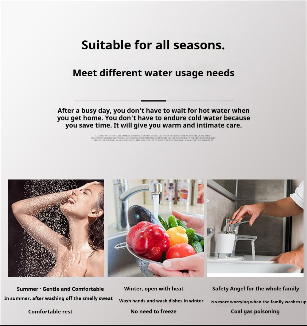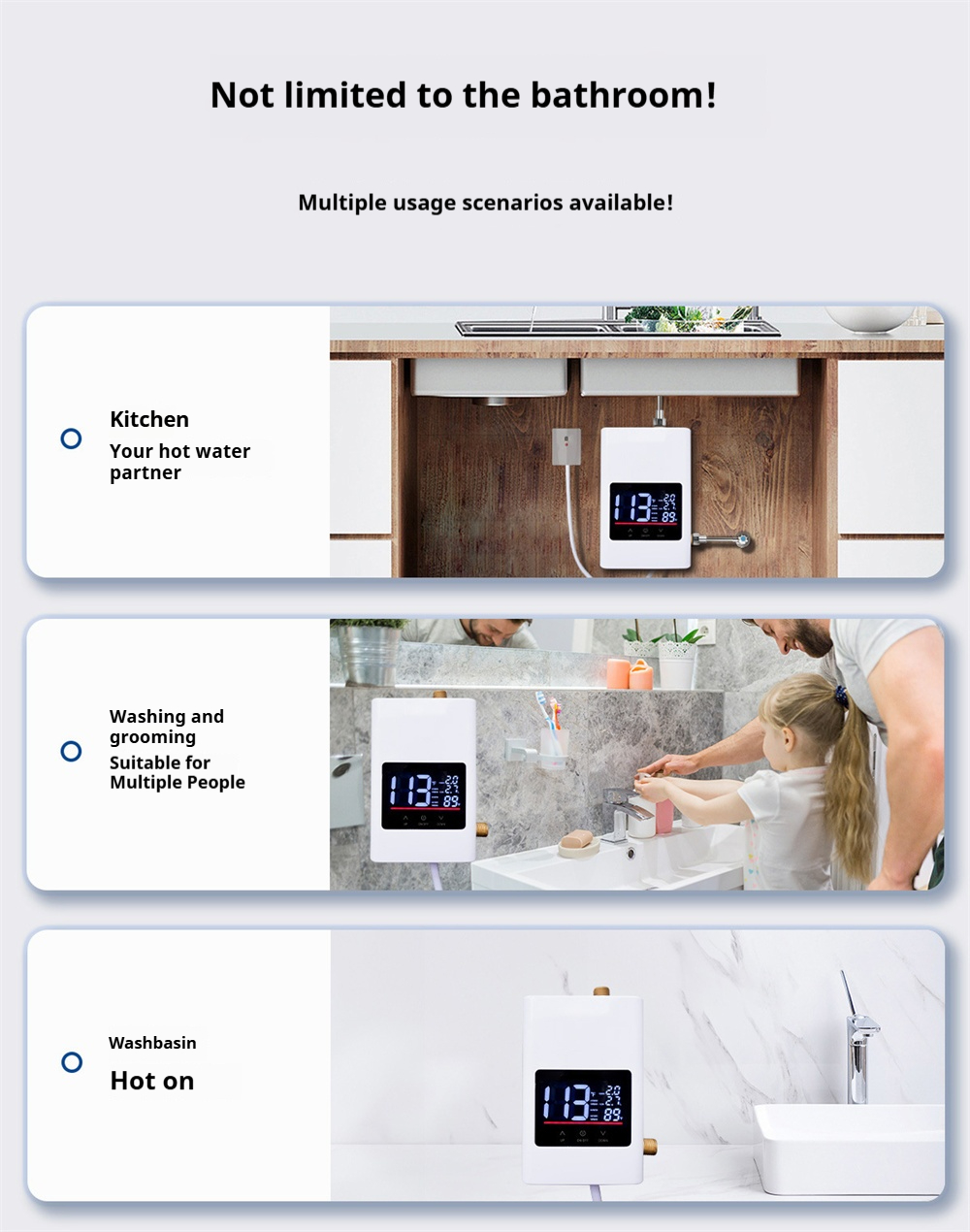 2. Monipuoliset käyttökohteet: Sähköinen läpivirtausvedenlämmitin sopii keittiöön, asuntoihin, kylpyhuoneeseen, matkailuajoneuvoihin jne.