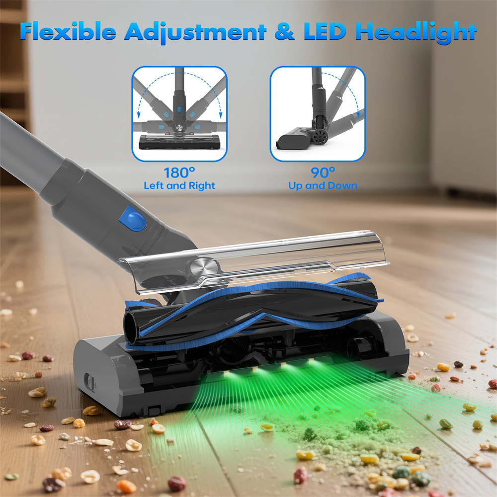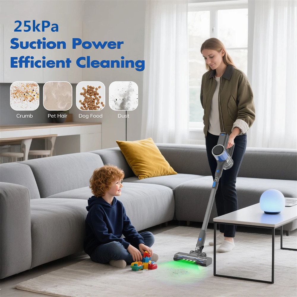 1. 25kPa vahva imu ja 200W moottori: harjaton moottori tehopuhdistukseen pölylle, lemmikkikarvoille ja roskille.