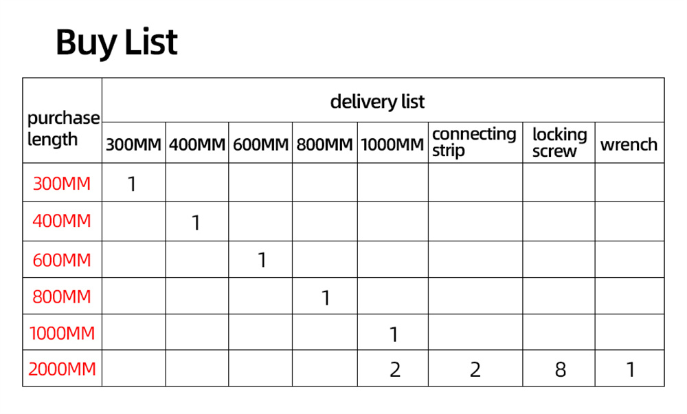 Säädettävä pituus: Valittavissa olevat pituudet 300mm, 400mm, 600mm, 800mm ja 1400mm tekevät tästä ohjainkiskosta monipuolisen työkalun erilaisiin puutöihin. Se tarjoaa joustavuutta sekä suuriin että tarkkuutta vaativiin projekteihin.