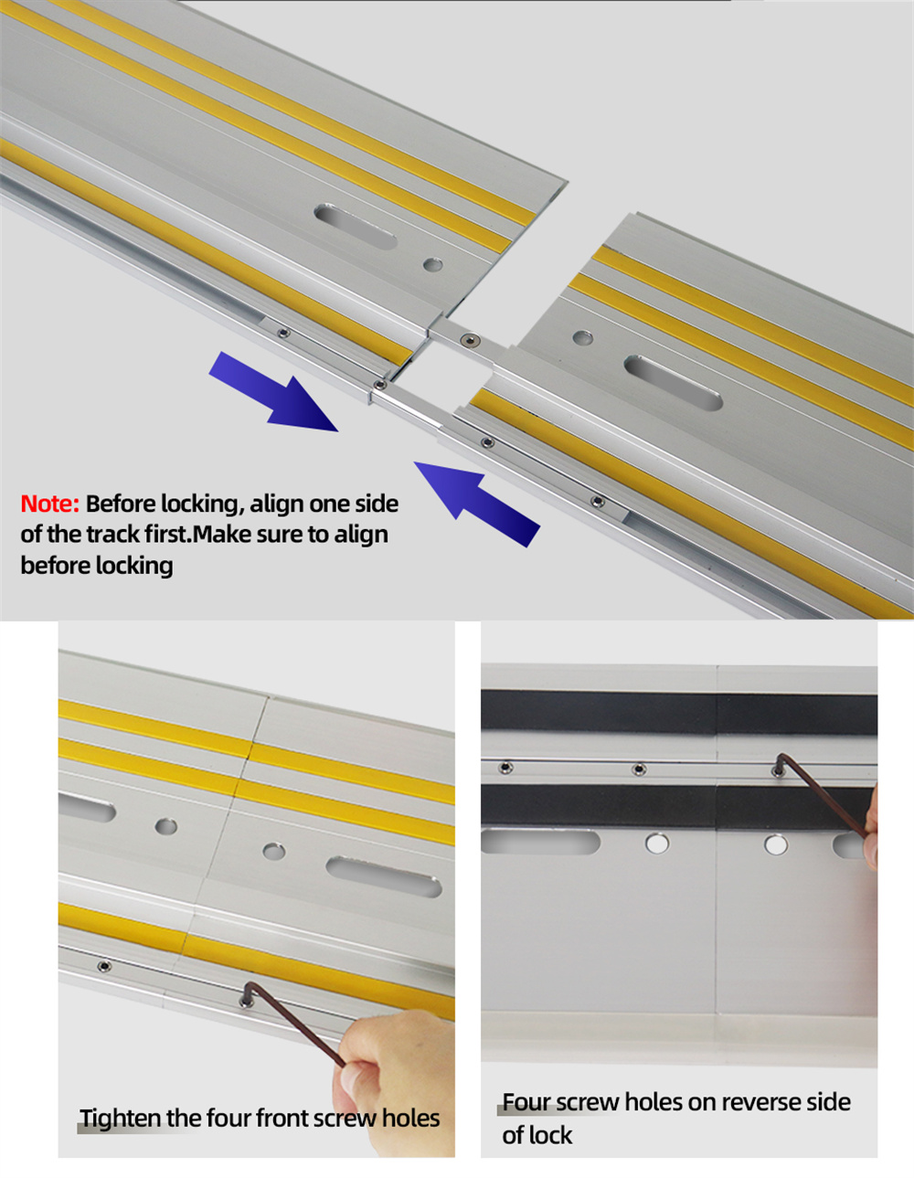 Huomautus: Tämä ohjainkisko on yhteensopiva myös POWERTEC Saw Guide Rail Connector -liitinsarjan kanssa. Sitä voidaan käyttää yhdessä ohjainkiskosovittimien ja muiden ohjainkiskolaitteiden kanssa, mikä laajentaa käyttömahdollisuuksia esimerkiksi jyrsimien kanssa.