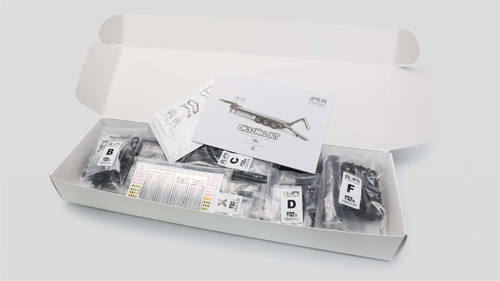 Orlandoo Hunter OH32N02 1/32 tee-se-itse kasaamaton valkoinen lavetti puoliperävaunu malli