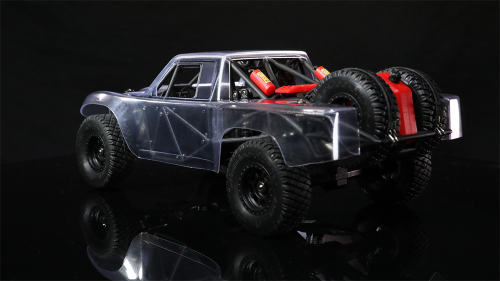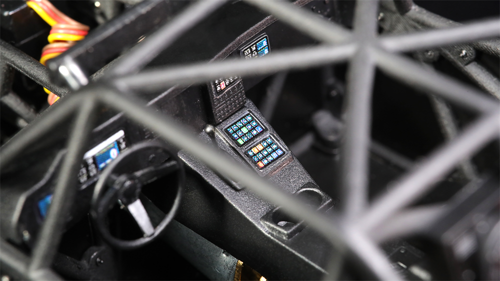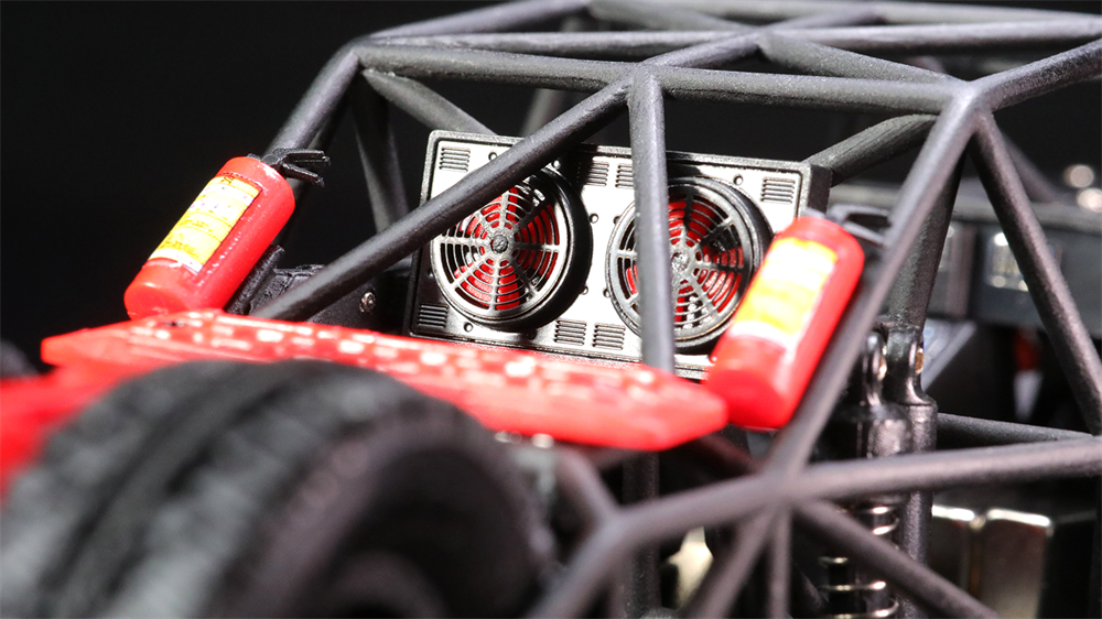 - Tarkka 1/32-mittakaavainen maastoauto yksityiskohtaisella rungolla ja sisustalla
