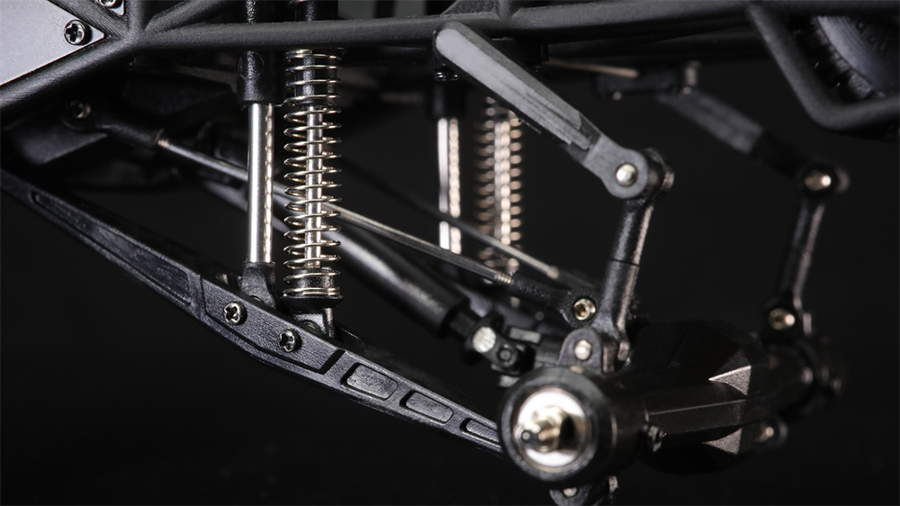 5. Jokaisessa pyörässä kaksi iskunvaimenninta (sisäinen jousellinen iskunvaimennin ja ulkoinen kierrejousellinen iskunvaimennin)