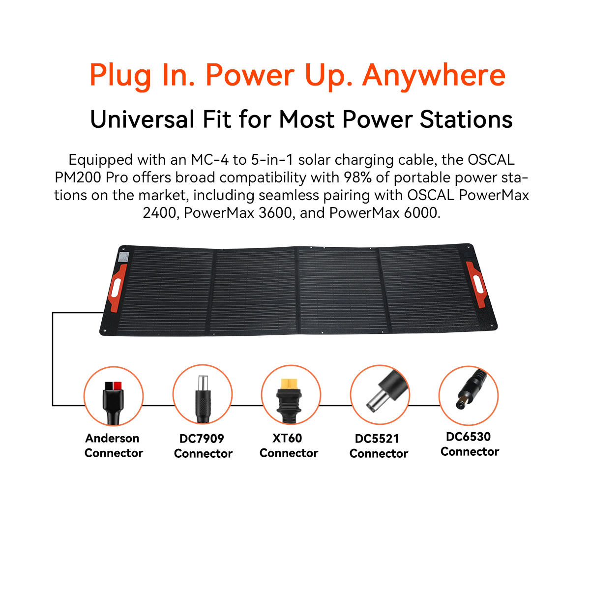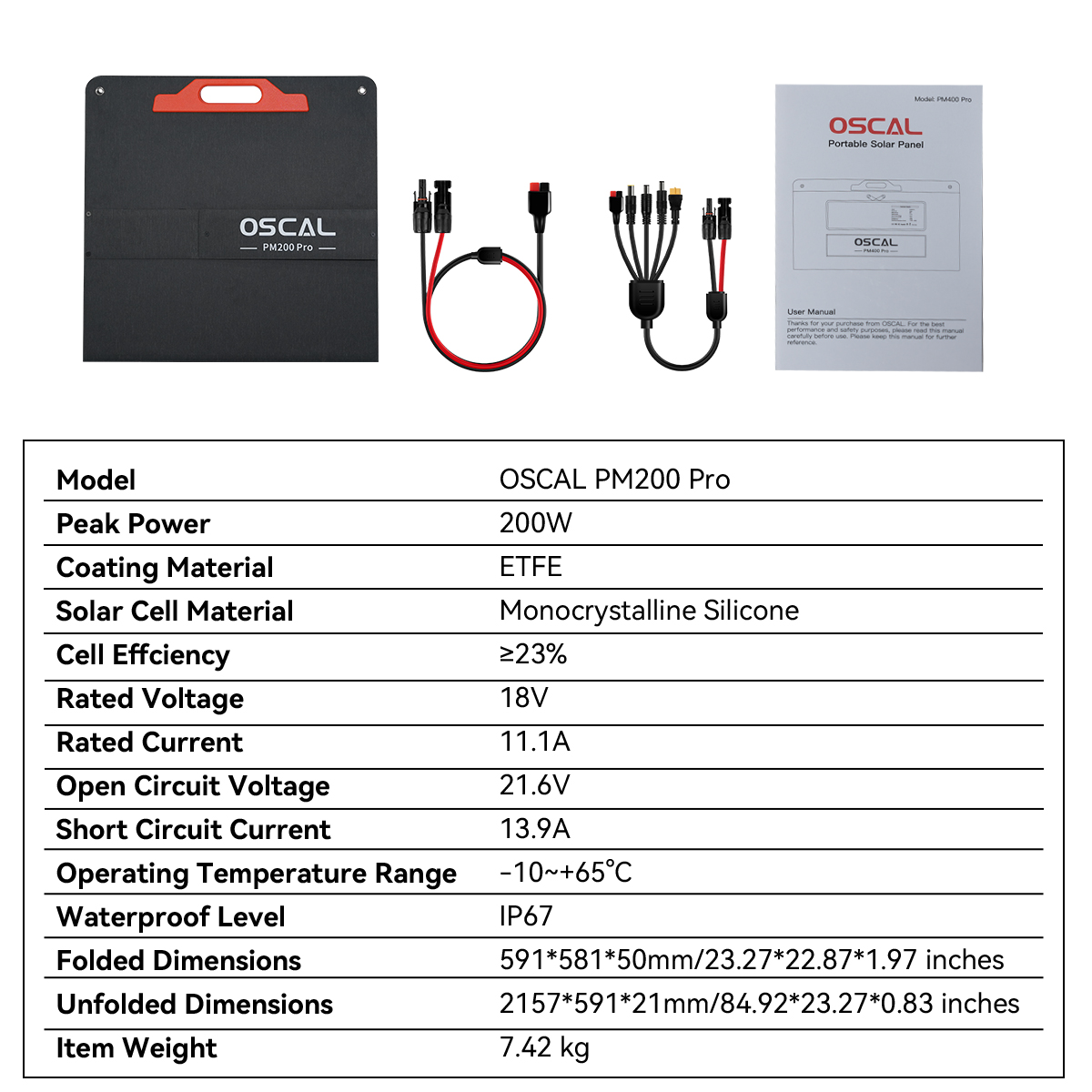 OSCAL PM200 Pro 200W taitettava monokiteinen aurinkopaneeli 23-prosenttinen IP67-suojattu ETFE