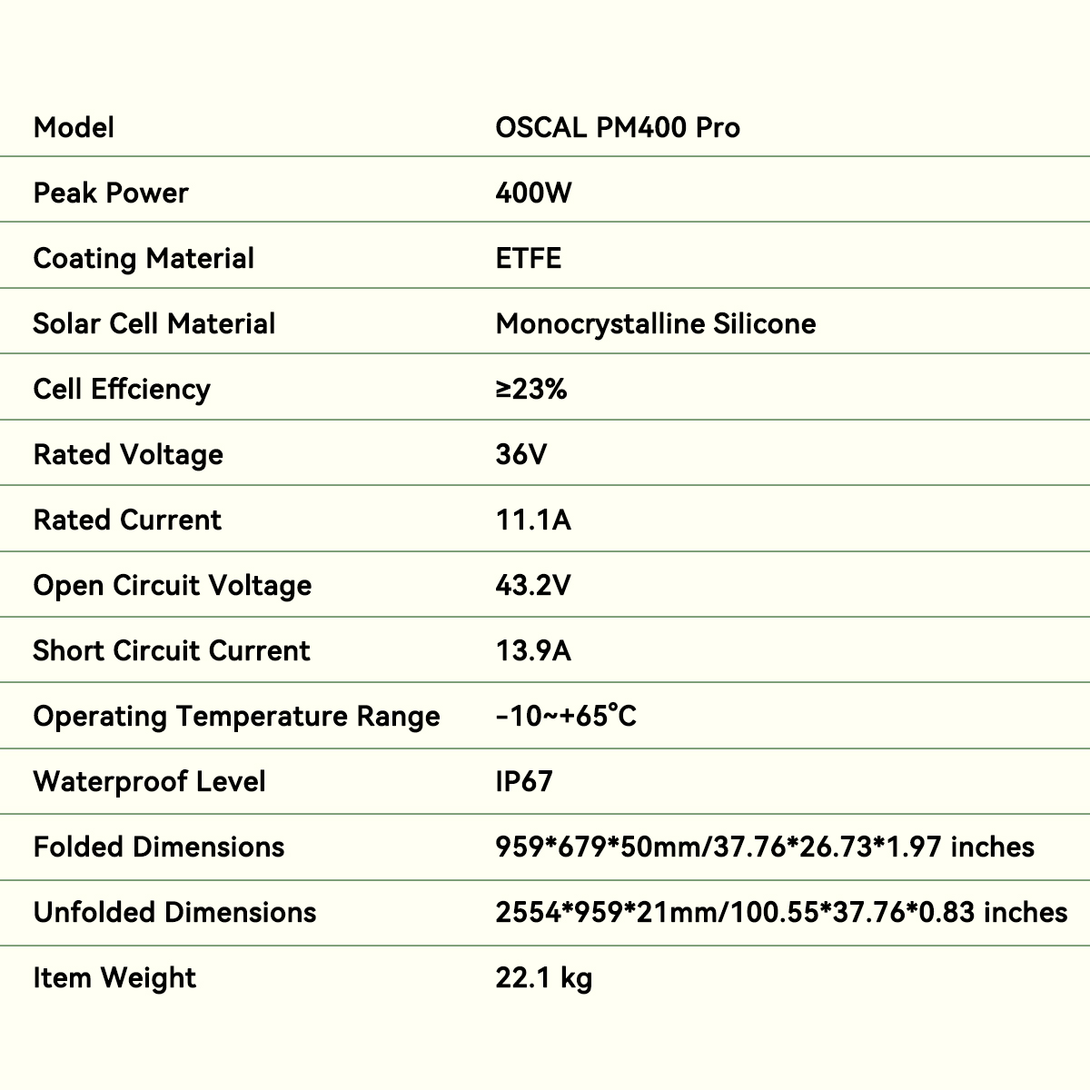 1 x OSCAL PM400 Pro -aurinkopaneeli