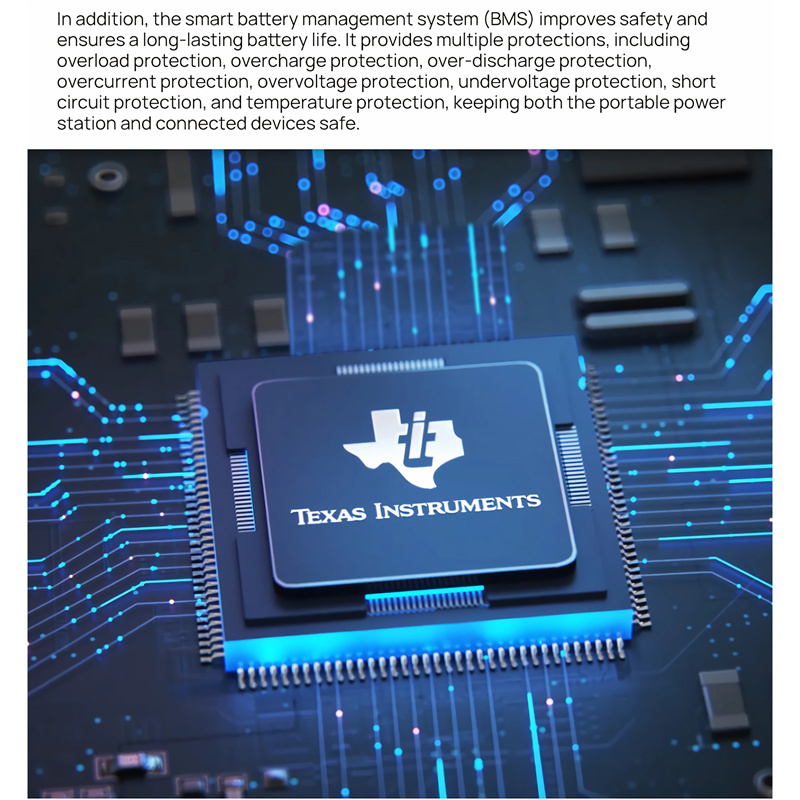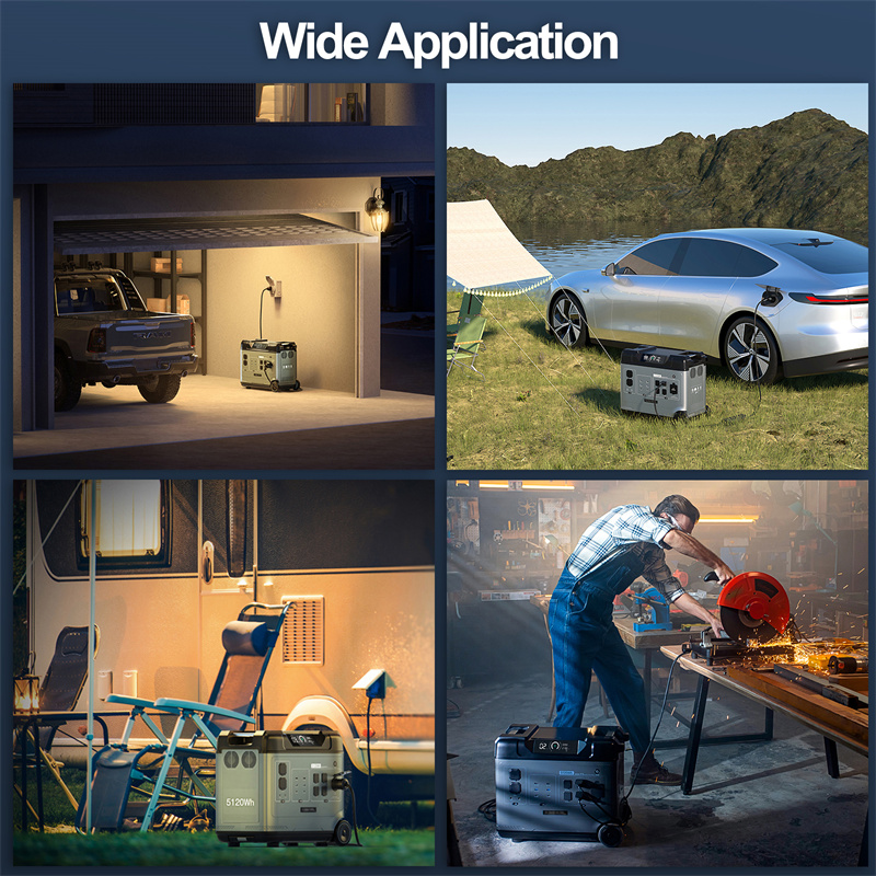2. Suuri akkukapasiteetti: 5120Wh LiFePO4-akku tarjoaa pitkän varavirran kotiin, retkeilyyn tai sähkökatkoihin. LiFePO4-akut tunnetaan pitkästä käyttöiästä ja turvallisuudesta.