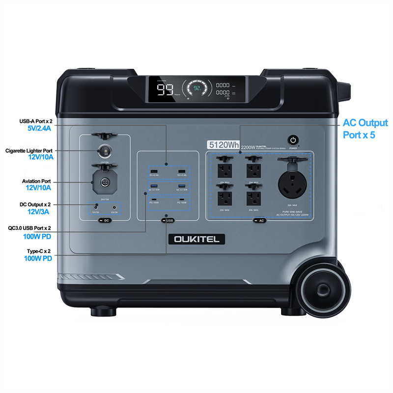 1. Korkea teho: Oukitel P5000E tarjoaa 2200W jatkuvaa tehoa ja 4400W huipputehon, joten se sopii olennaisten laitteiden ja työkalujen käyttöön hätätilanteissa tai ulkoilussa.