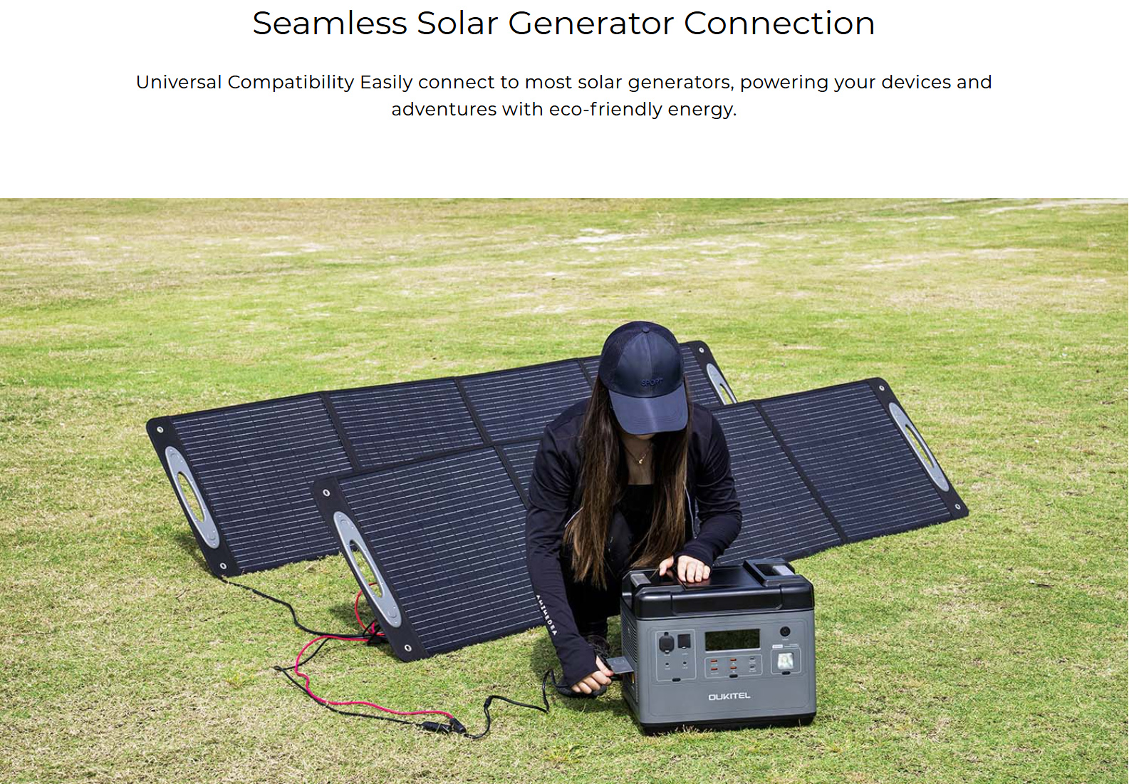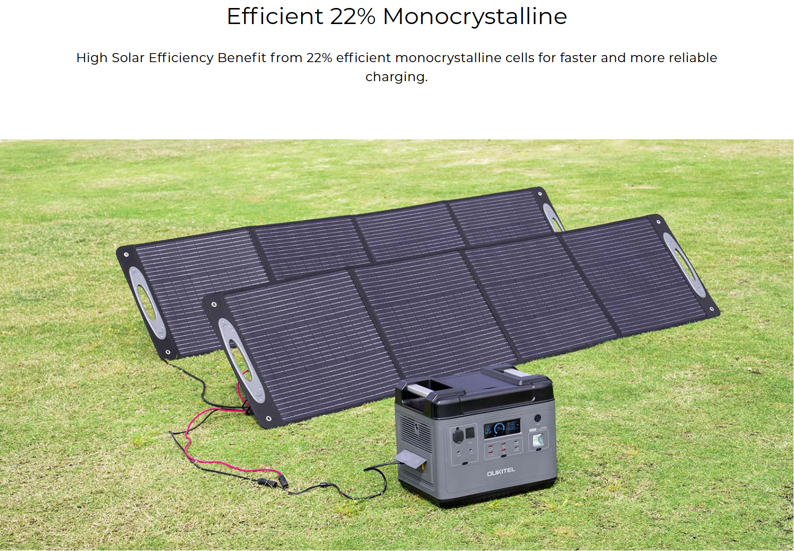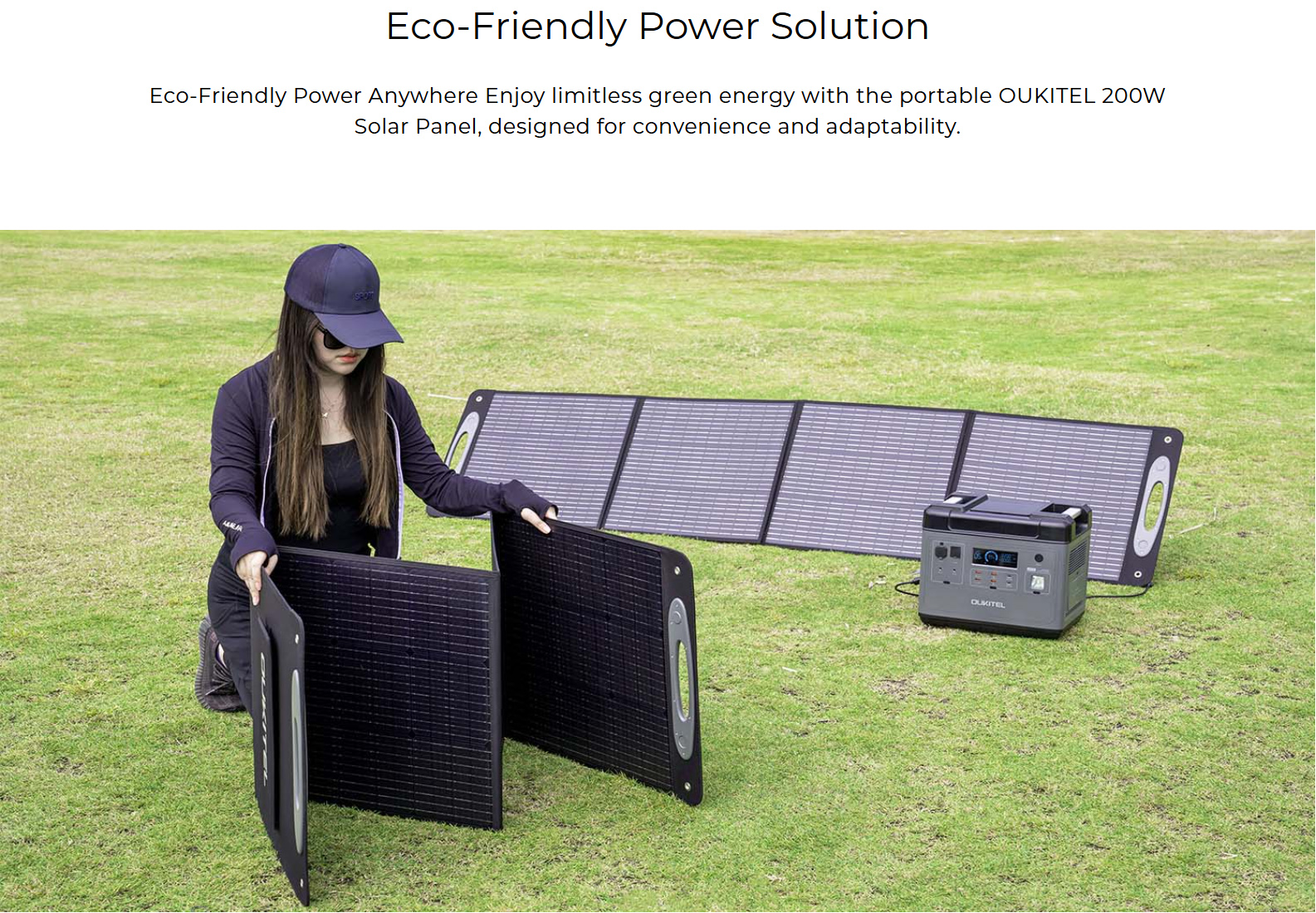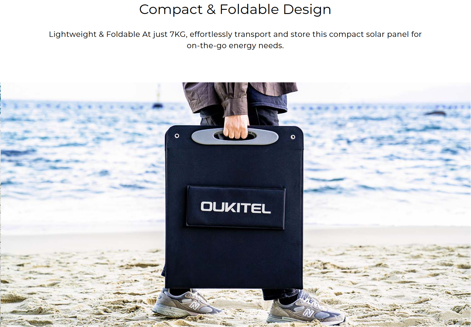 OUKITEL PV200 on 200W taitettava aurinkopaneeli, joka on suunniteltu kannettavaksi virtalähteeksi esimerkiksi retkeilyyn, mökille ja varavirraksi sähkökatkosten varalle. Korkean hyötysuhteen monikiteiset kennot, roiskevesitiivis rakenne ja säädettävä teline tekevät siitä käytännöllisen ratkaisun ulkokäyttöön.