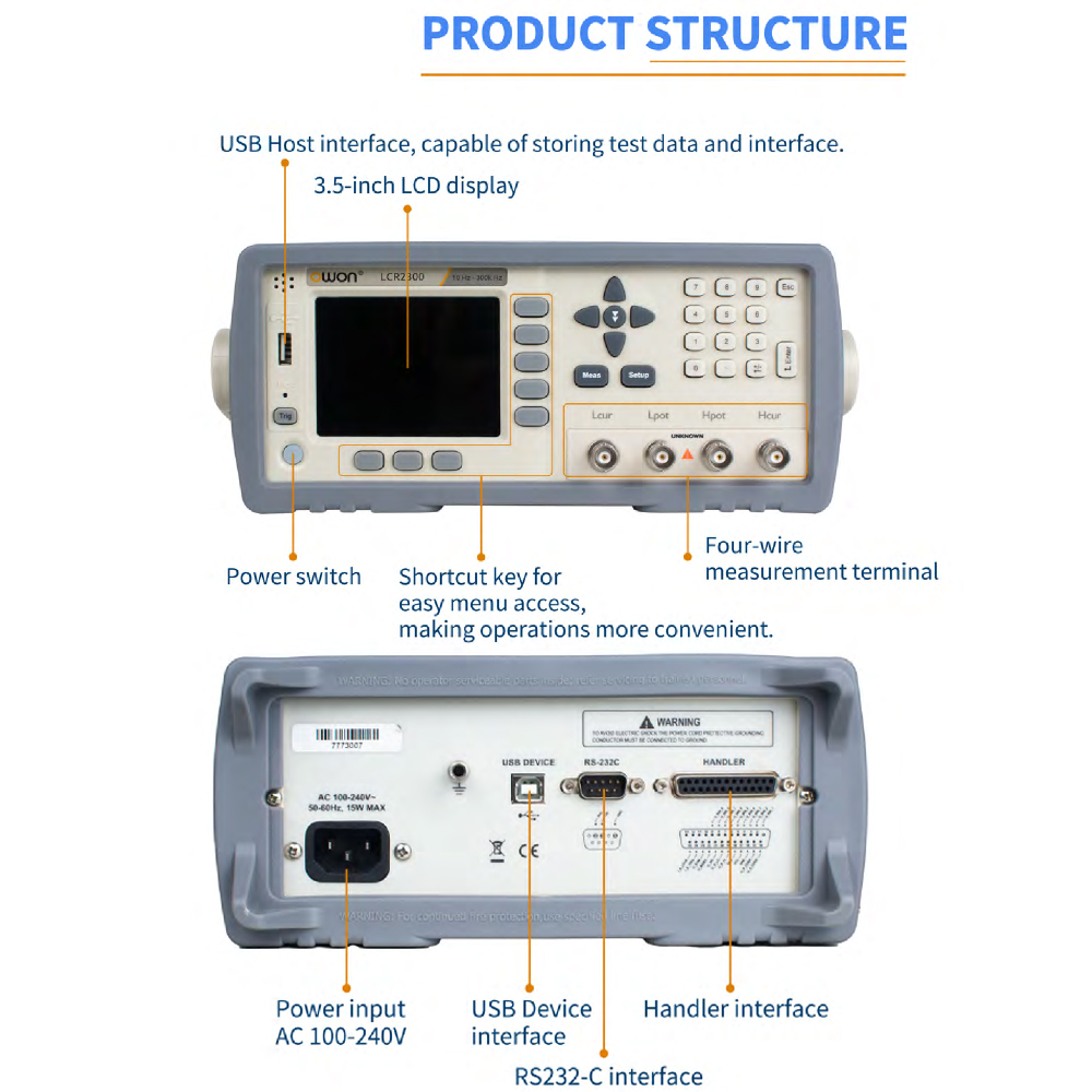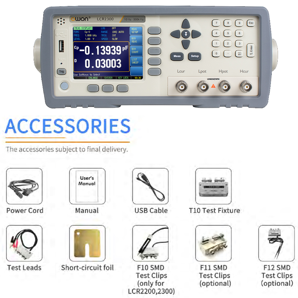 OWON LCR2000-sarja lcr-mittari 10–100 kHz testitaajuus 0,05% tarkkuus nopea mittaus USB RS232
