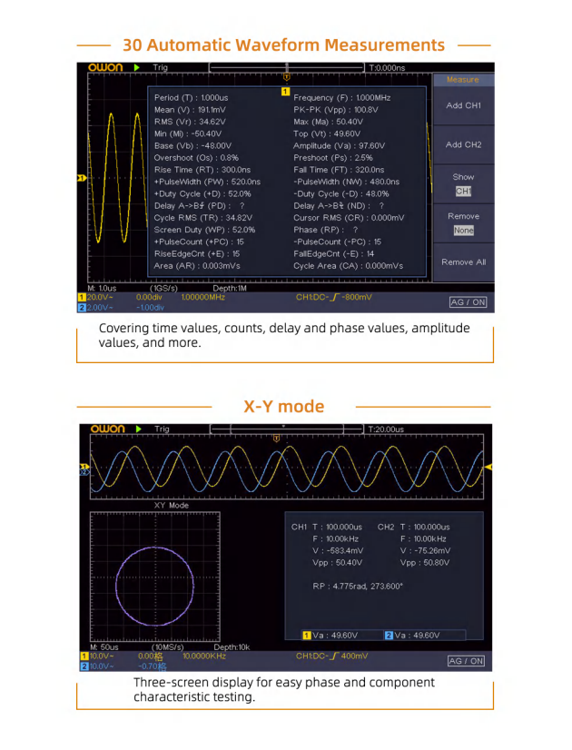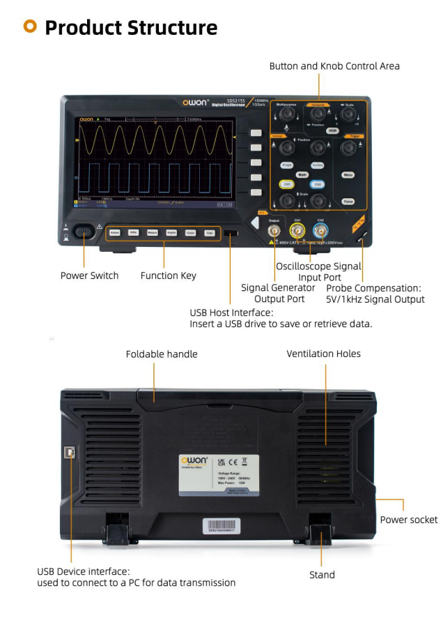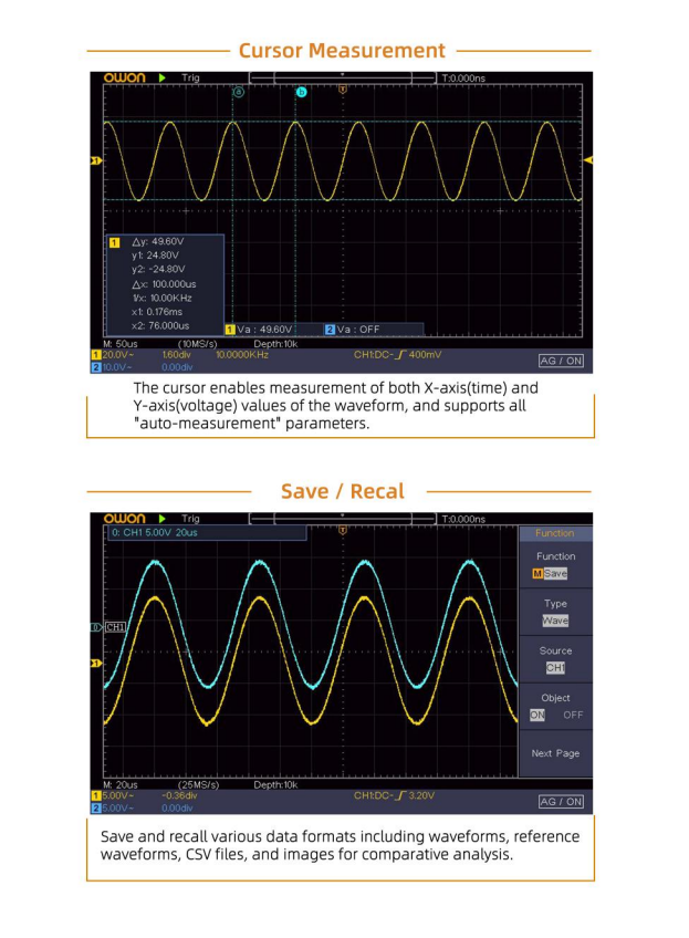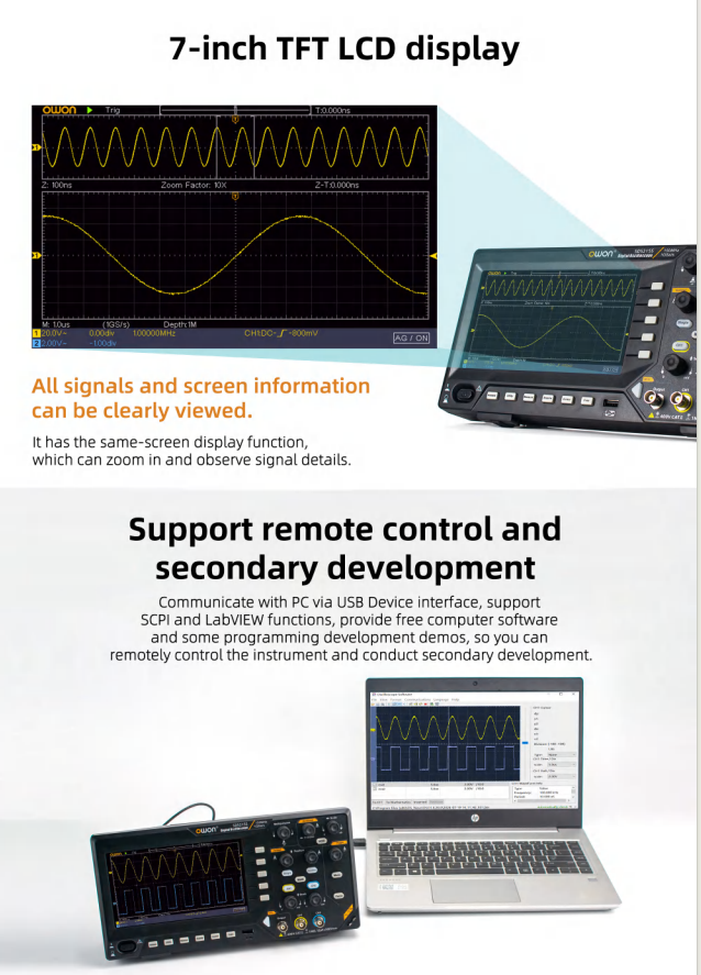 OWON SDS200-sarja digitaalinen oskilloskooppi 2 kanavaa 1 GS/s näytteenottotaajuus 150–200 MHz USB 2.0