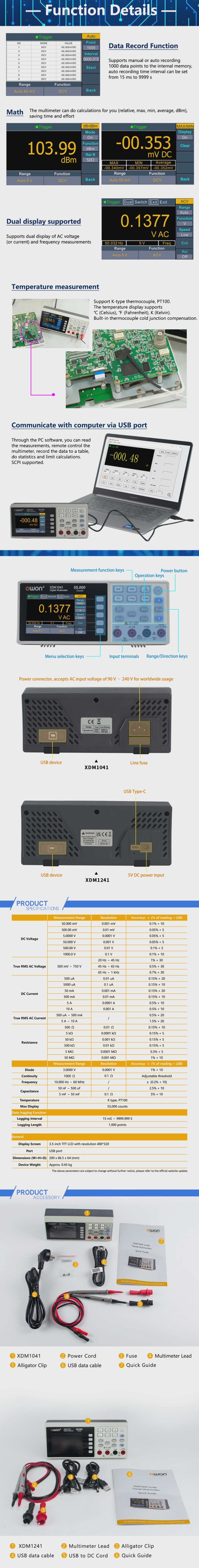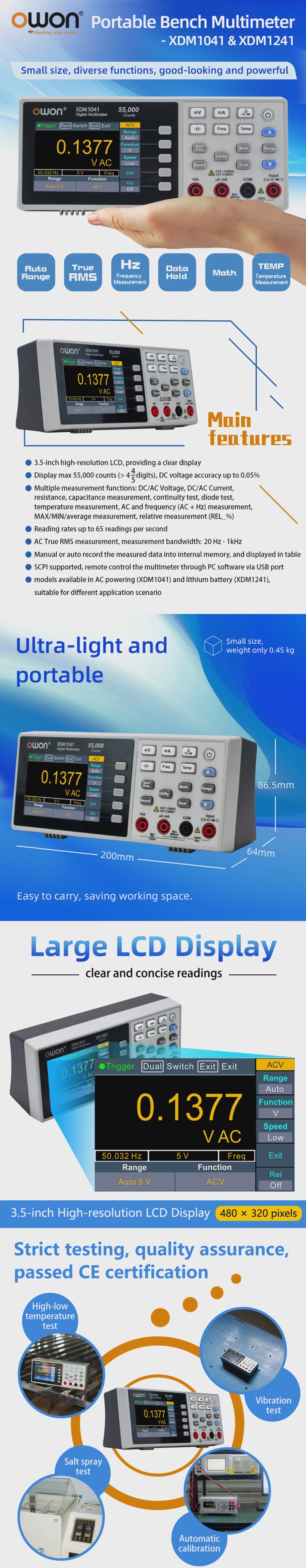 OWON XDM1241 usb-liitännällä digitaalinen pöytämittari 55000 lukemaa 3,5 tuuman TFT-näytöllä