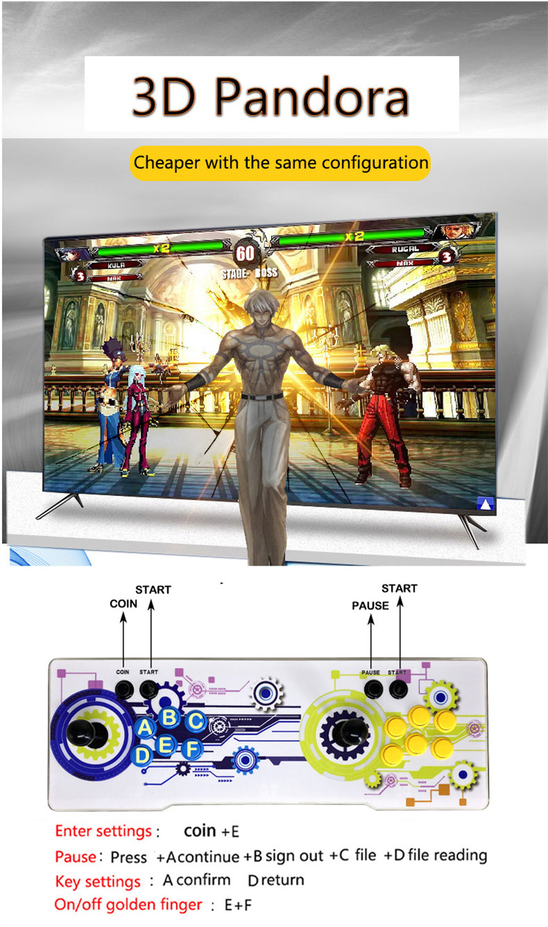 Pandorra Box 3D retro pelikonsoli 7000 peliä 8-painikkeinen kaksinpeli