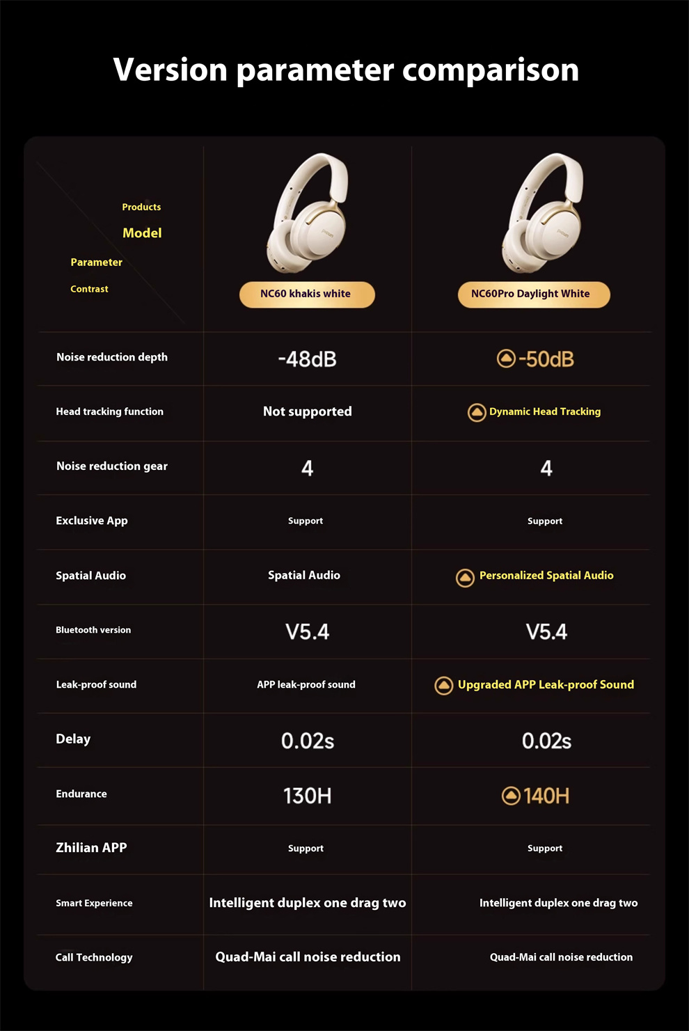 NC60 Pro: -50db syvä melunvaimennus + dynaaminen pään liikkeen seuranta + 140 tunnin akunkesto