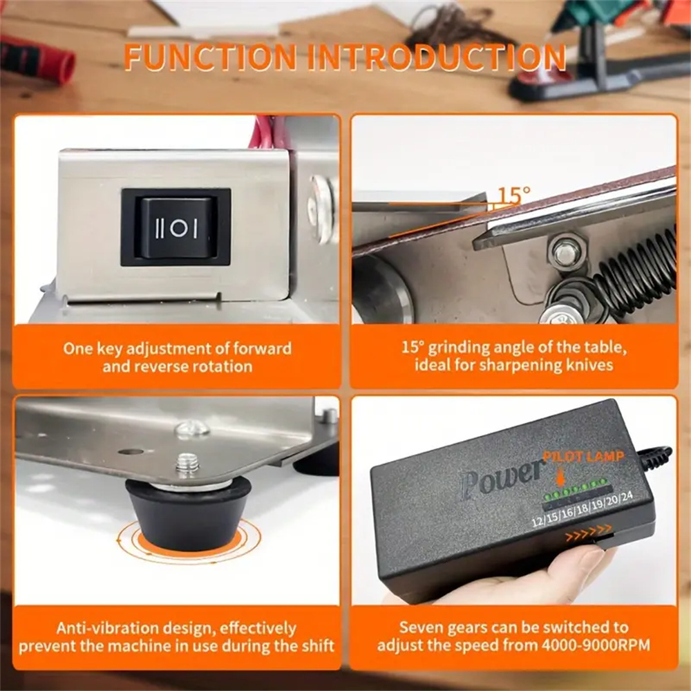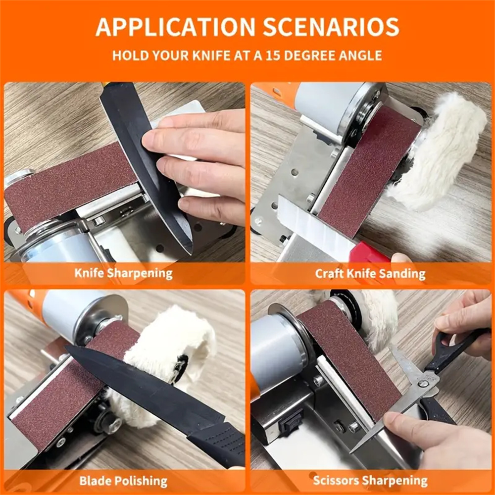 Pieni sähköinen hihnahiomakone ja veitsenteroitin kaksitoiminen säädettävällä nopeudella puu metallityöhön