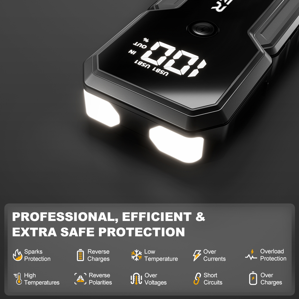 - Monipuolinen suojaus: 10 erilaista älykästä akunsuojatoimintoa ja päivitetyt raskaat apukaapelit tekevät käytöstä turvallista ja estävät oikosulut sekä kipinöinnin.