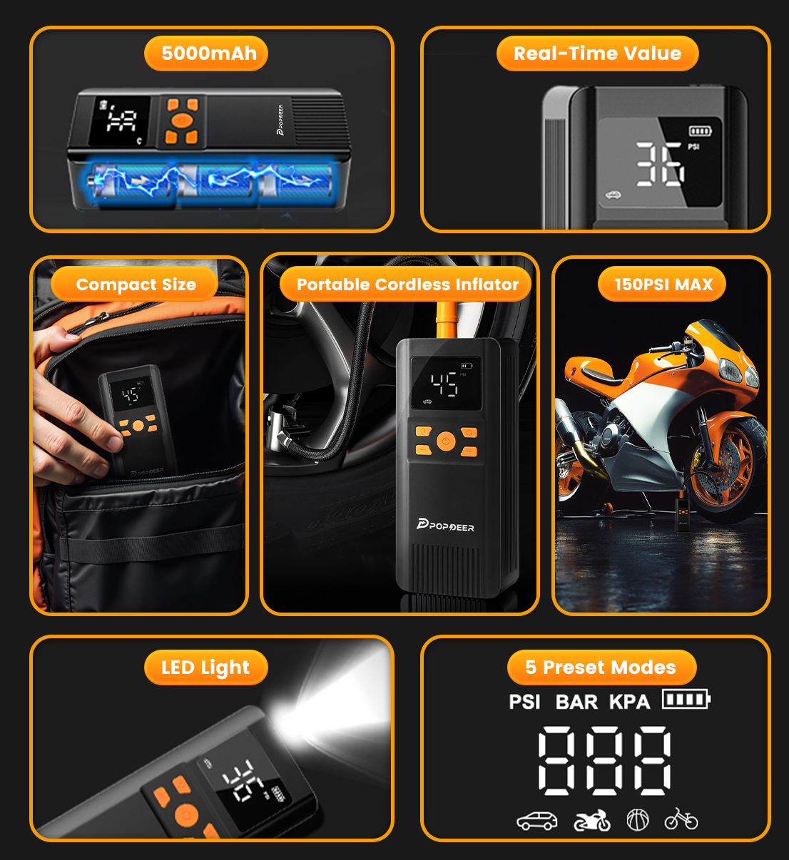 POPDEER PD-AP1 langaton kannettava rengaspumppu autolle 5000mAh 150PSI älykäs digitaalinen