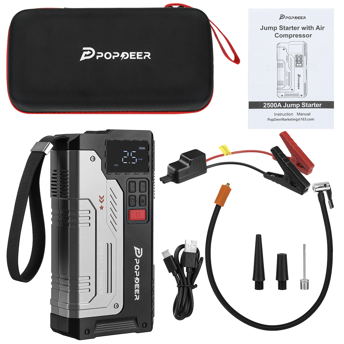 POPDEER PD-JA1 20000mAh 5000A ammattimainen kannettava hätäkäynnistin ilmapumpulla